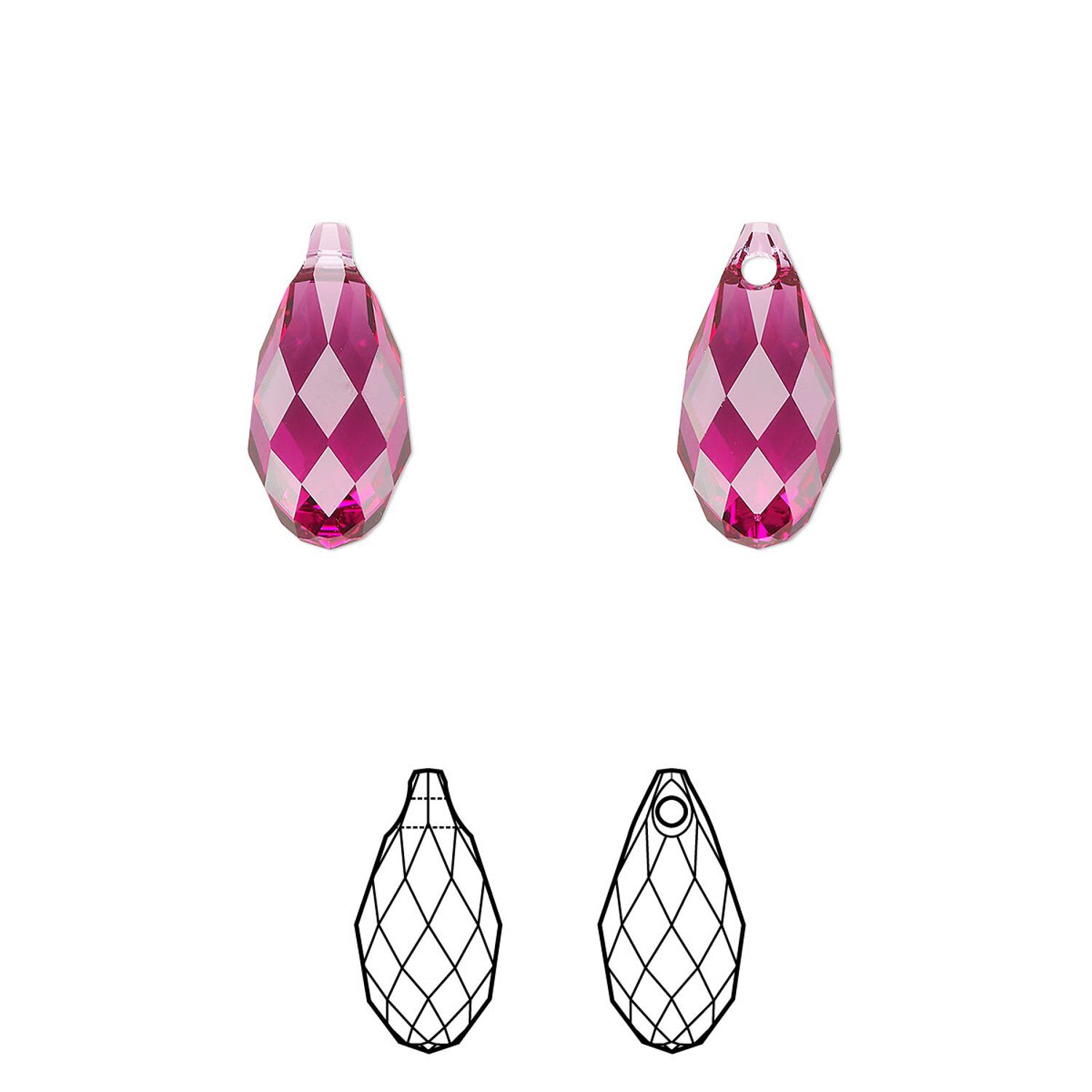 Briolette 144pk fuchsia, Swarovski® 13x6.5mm pendant drop 6010