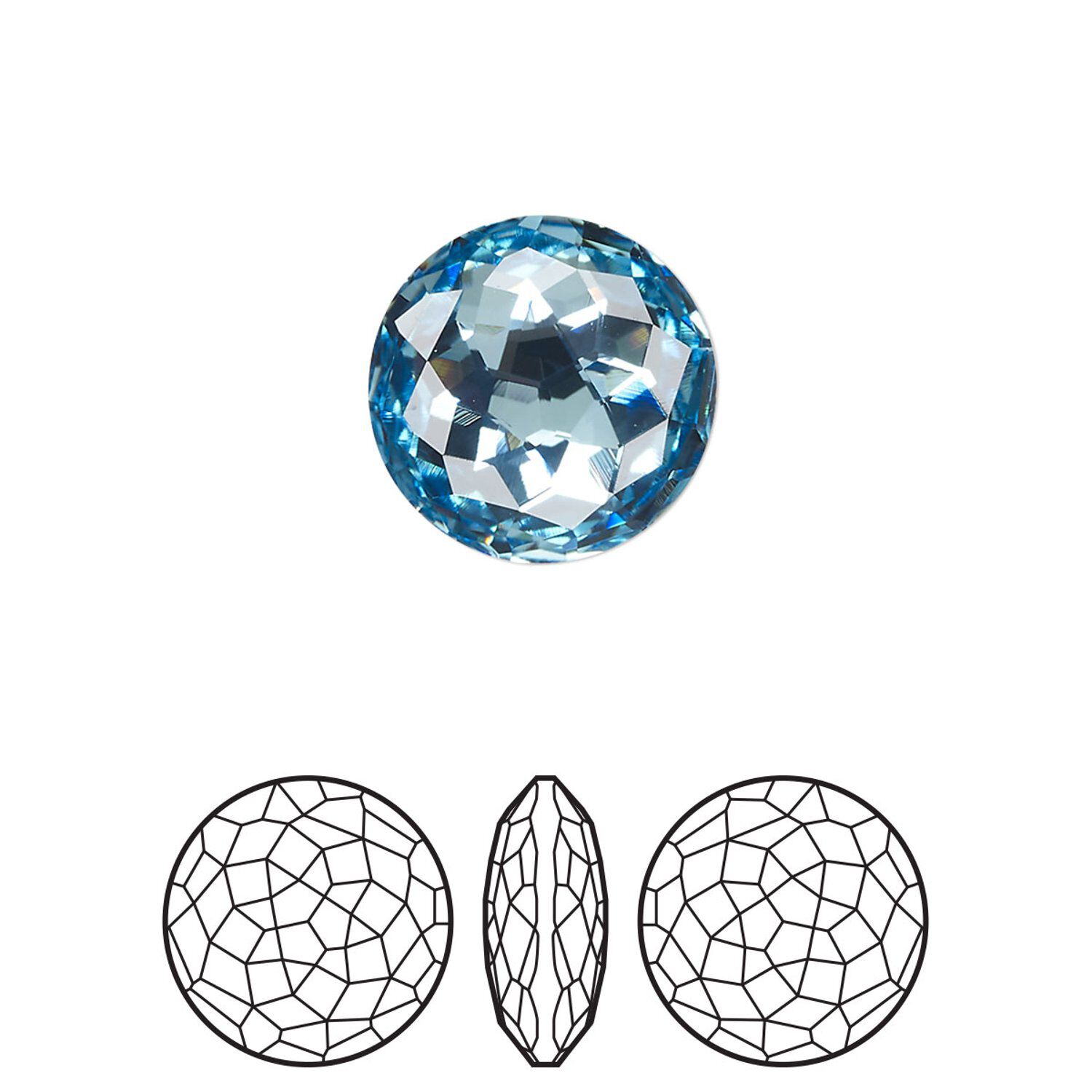 Round stone 48pk aquamarine foil back, Swarovski® 14mm fancy round 1383