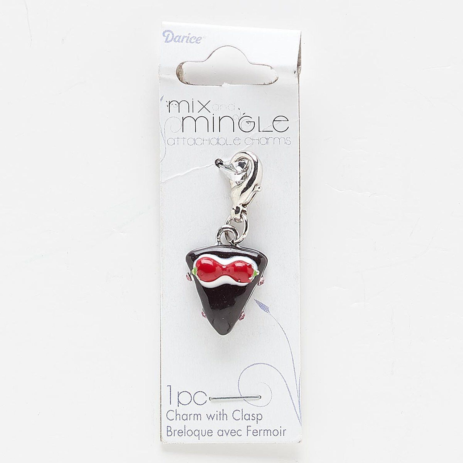 Charm, enamel / glass rhinestone / silver-finished "pewter" (zinc-based alloy), multicolored, 16x15mm cake slice. Sold individually.