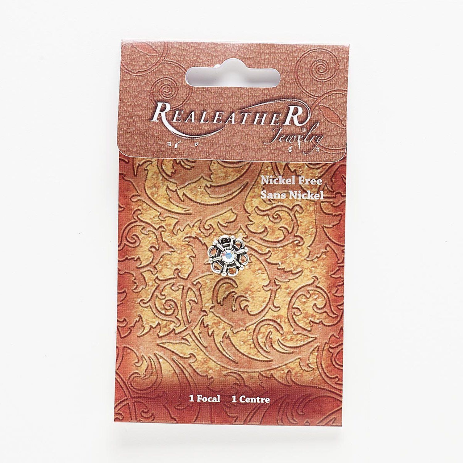 Component, antiqued silver-finished steel / "pewter" (zinc-based alloy) / glass, clear AB, 13mm flower with screw fastener. Sold individually.