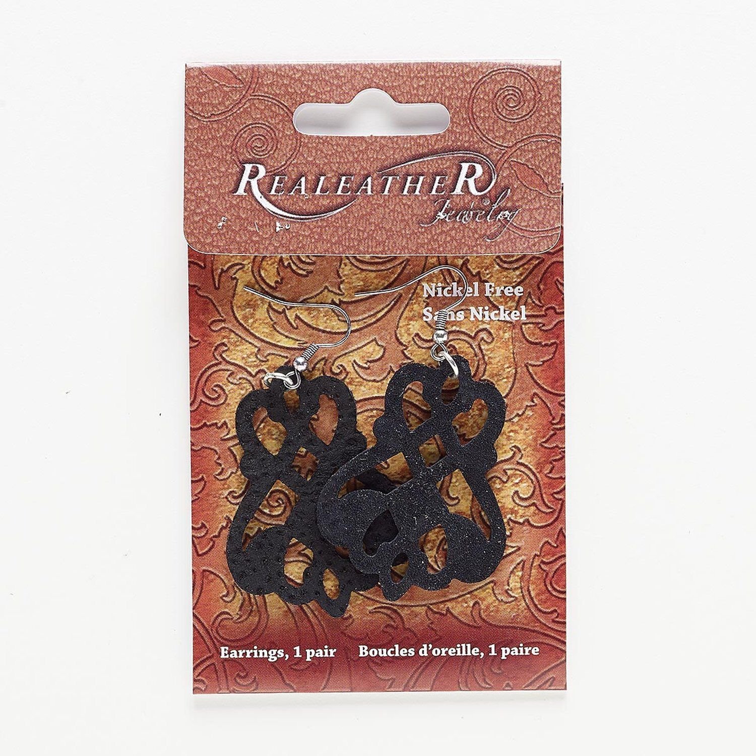 Earring, suede and silver-finished "pewter" (zinc-based alloy), black, 2-1/2 to 2-3/4 inches with cutout design. Sold per pair.