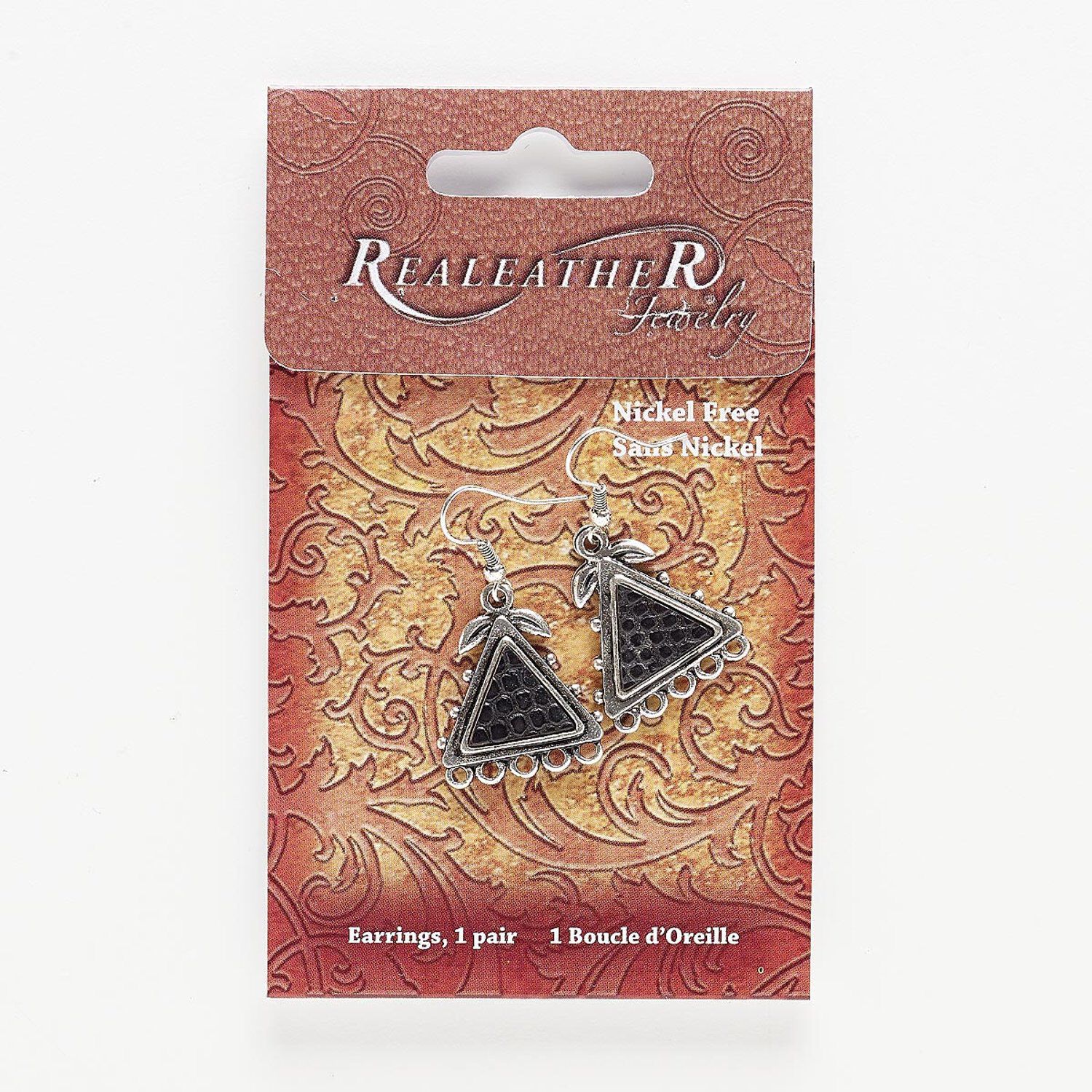 Ear wire fishhook 1pkg2 "pewter" (zinc-based alloy), 1.5-1.75 inch / triangle / leaf design / double-sided / 5 loop, antique silver-finished / faux lizard leather / black 1 pair