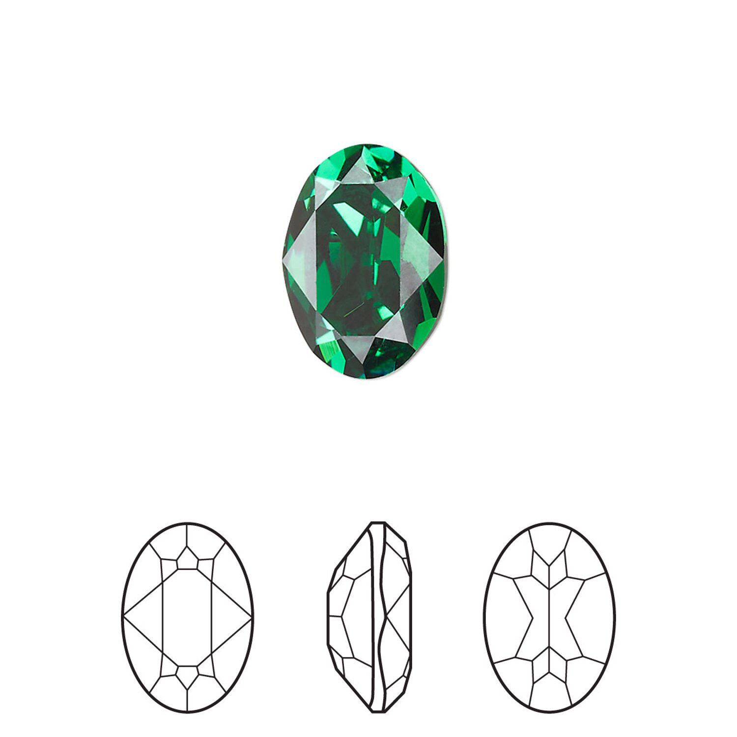 Fancy stone 144pk majestic green foil back, Swarovski® 14x10mm oval 4120