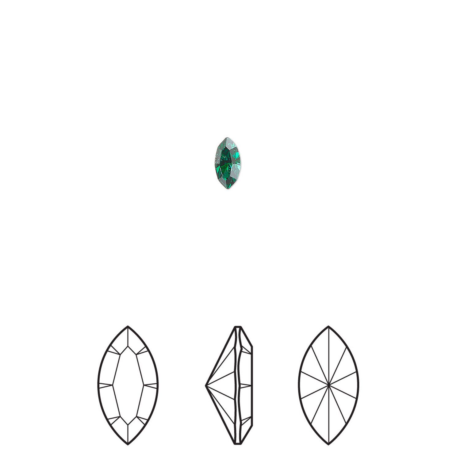 Fancy stone 6pk majestic green foil back, Crystal Passions® 5x2.5mm navette 4228