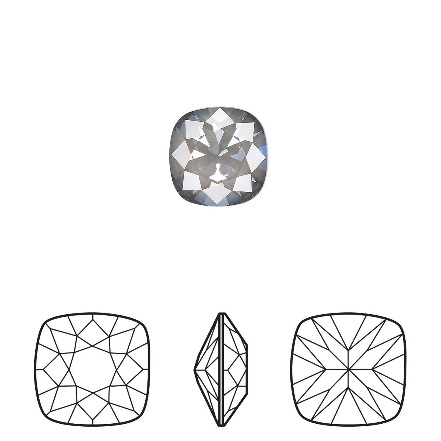 Fancy stone 144pk crystal dark grey ignite LacquerPRO, Swarovski® 10mm cushion 4470