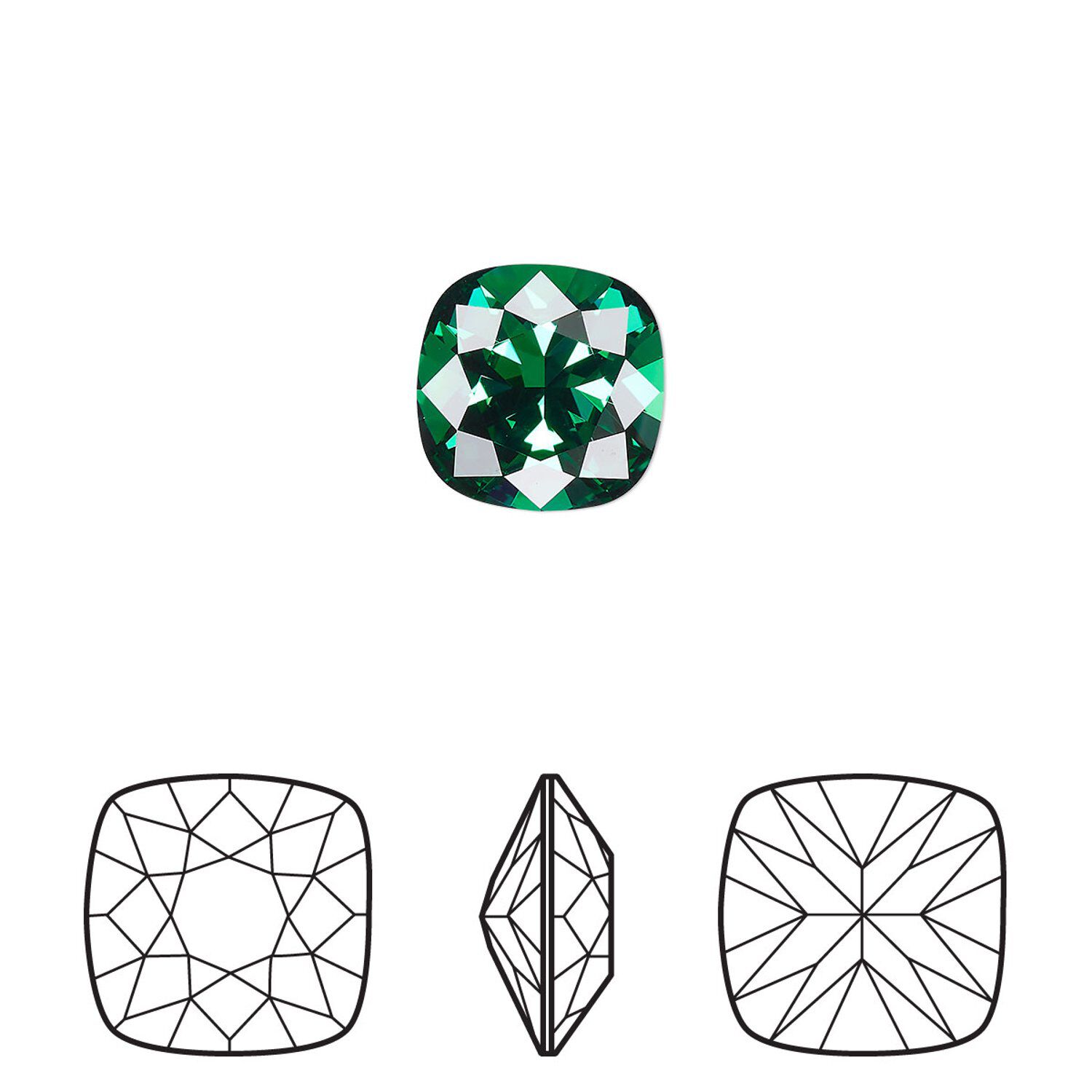 Fancy stone 144pk majestic green foil back, Swarovski® 10mm cushion 4470