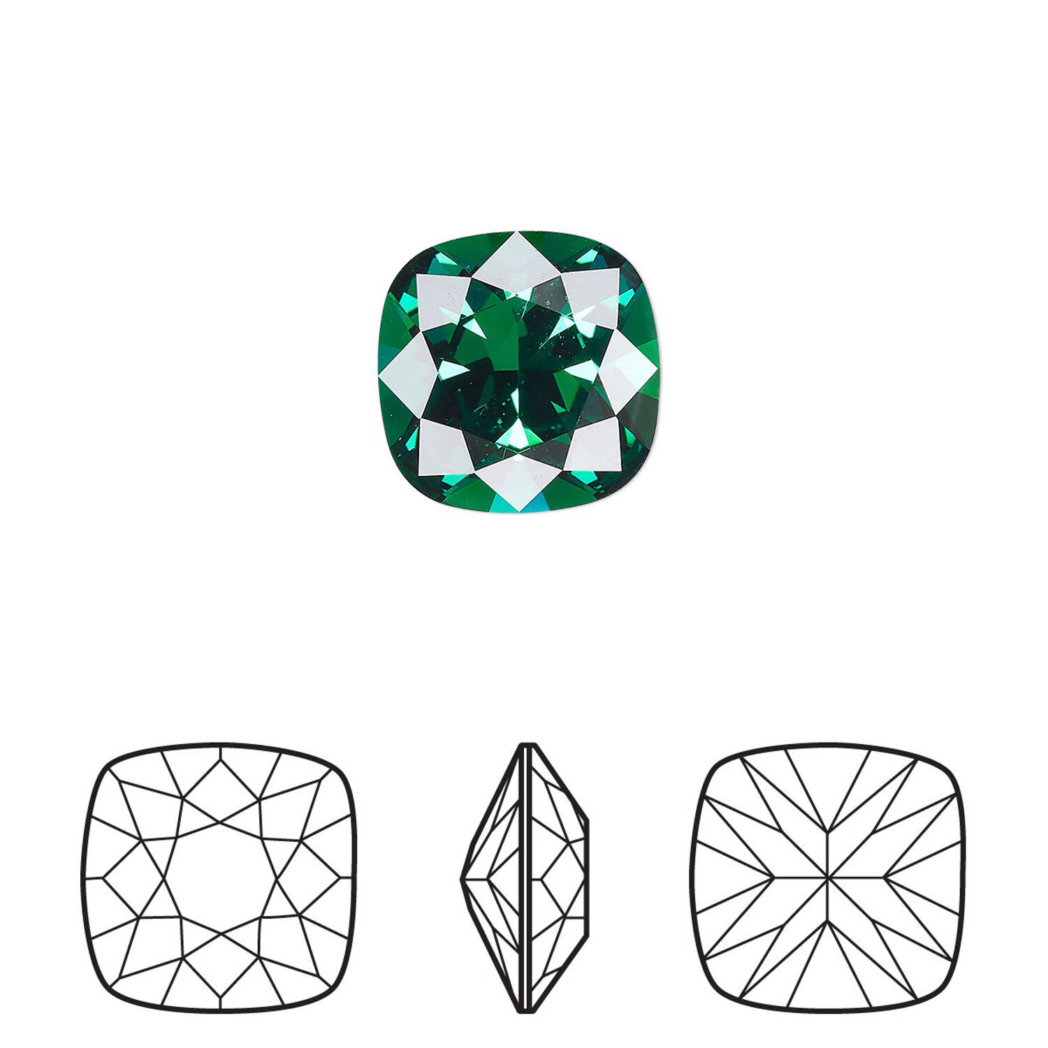 Fancy stone 72pk majestic green foil back, Swarovski® 12mm cushion 4470