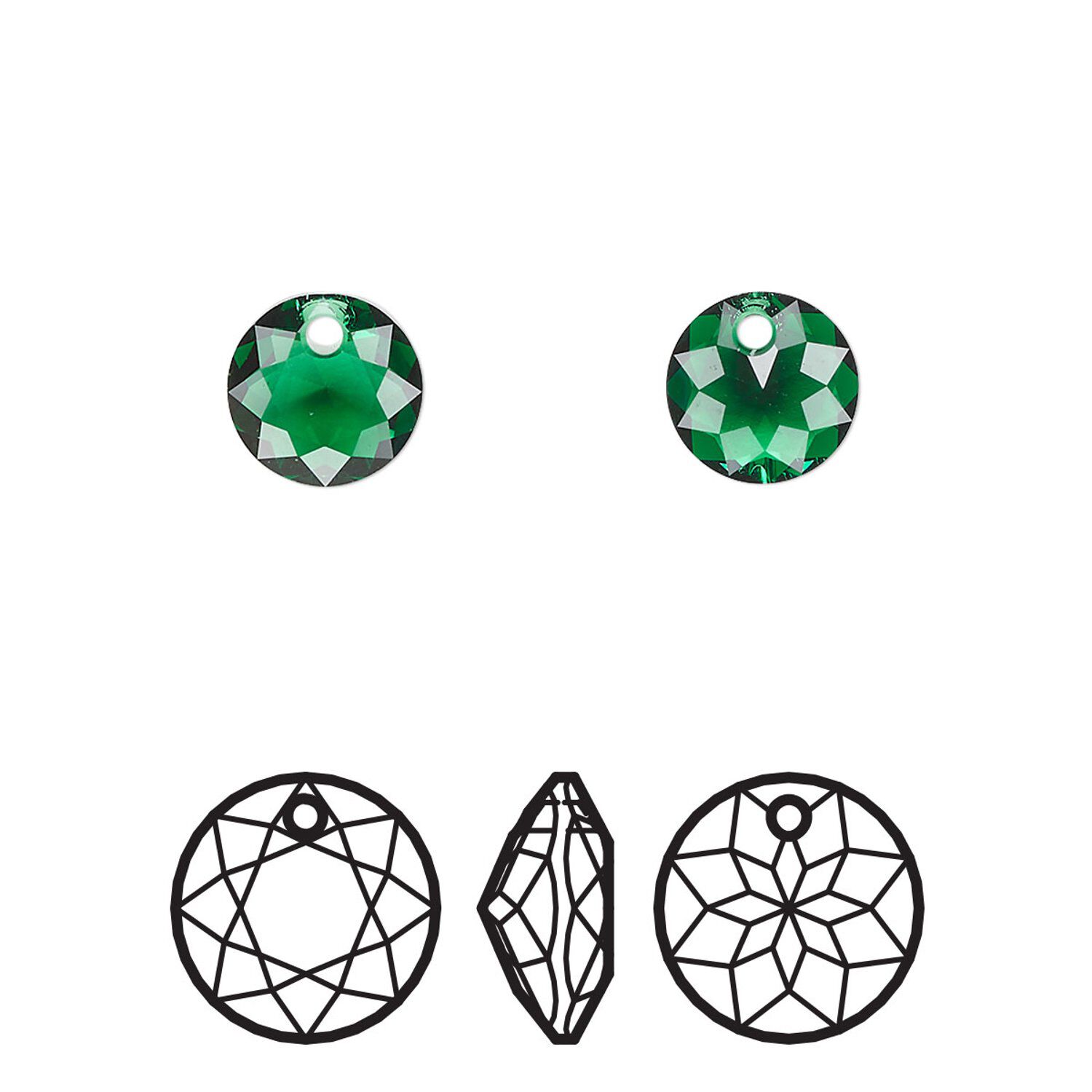 Drop 72pk majestic green, Swarovski® 8mm pendant classic cut 6430