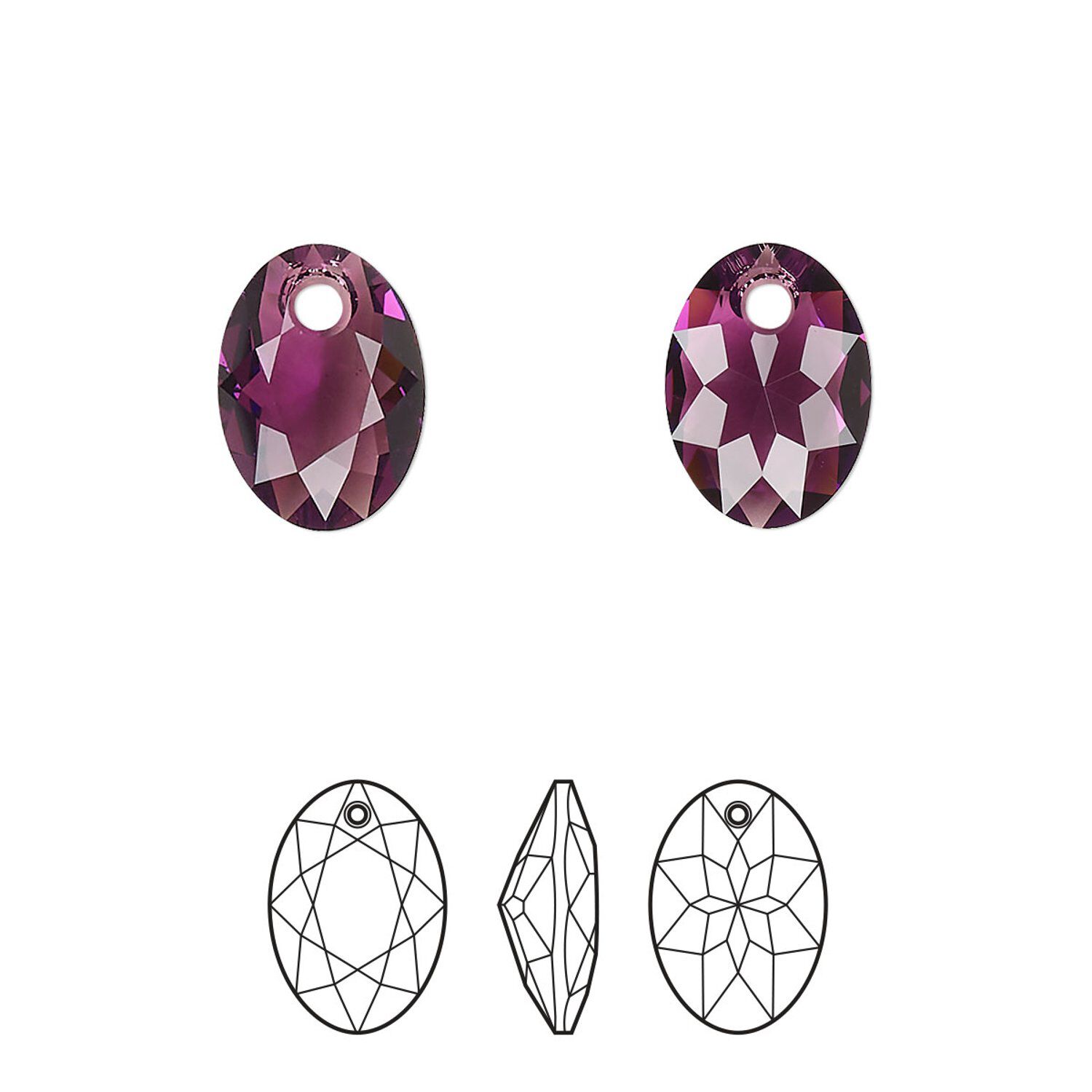 Drop 2pk amethyst, Crystal Passions® 11.5mm pendant elliptic cut 6438