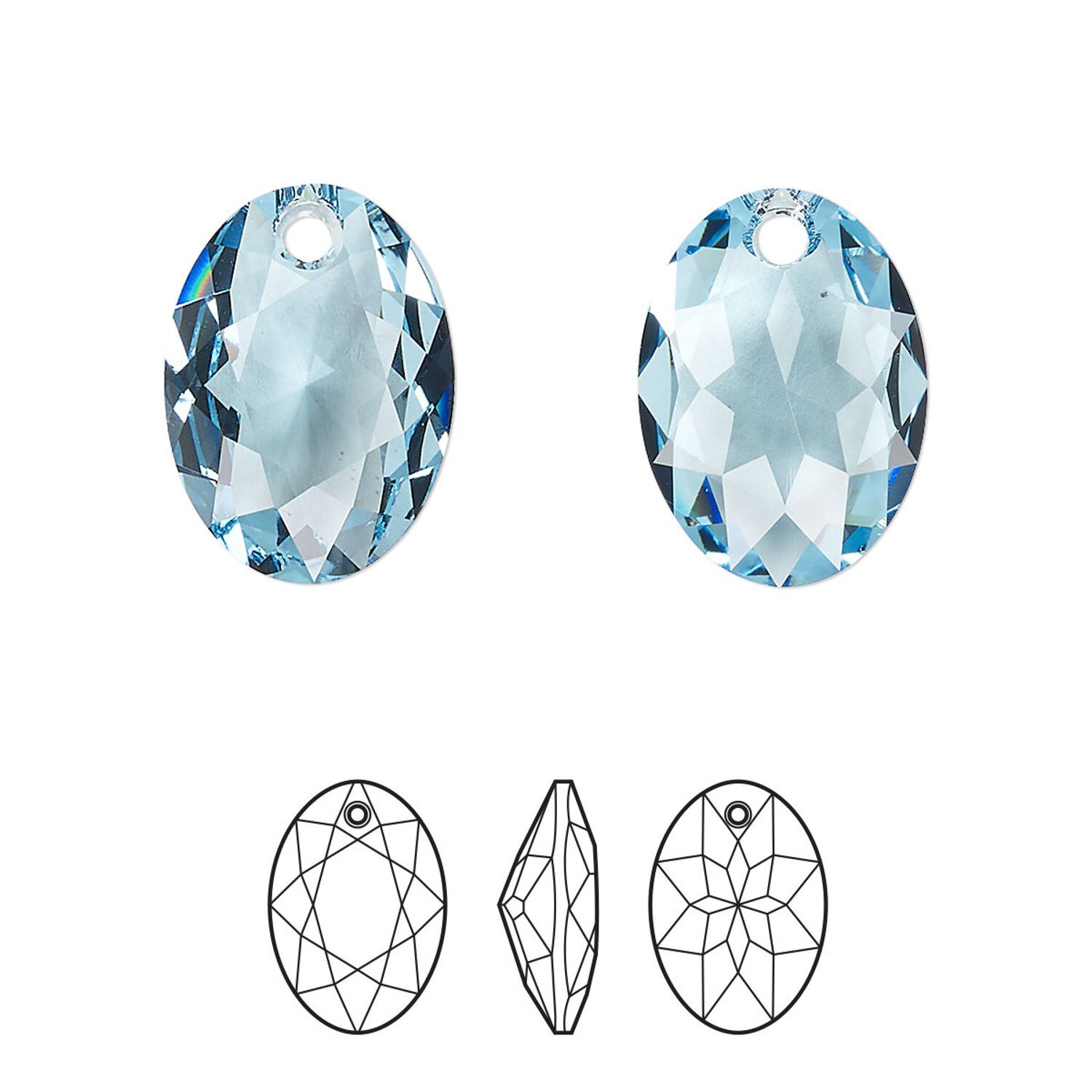 Drop 36pk aquamarine, Swarovski® 16mm pendant elliptic cut 6438