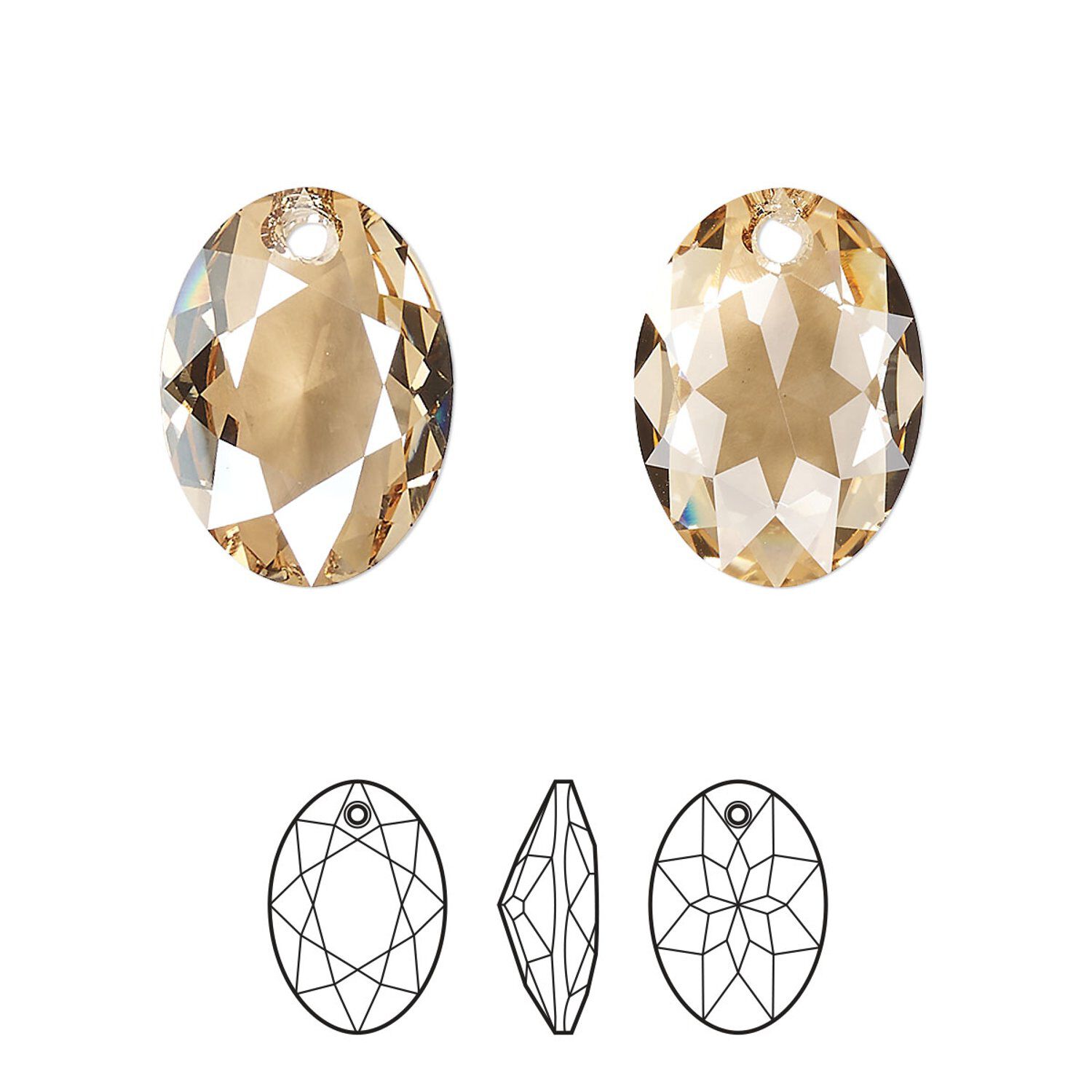 Drop 36pk crystal golden shadow, Swarovski® 16mm pendant elliptic cut 6438