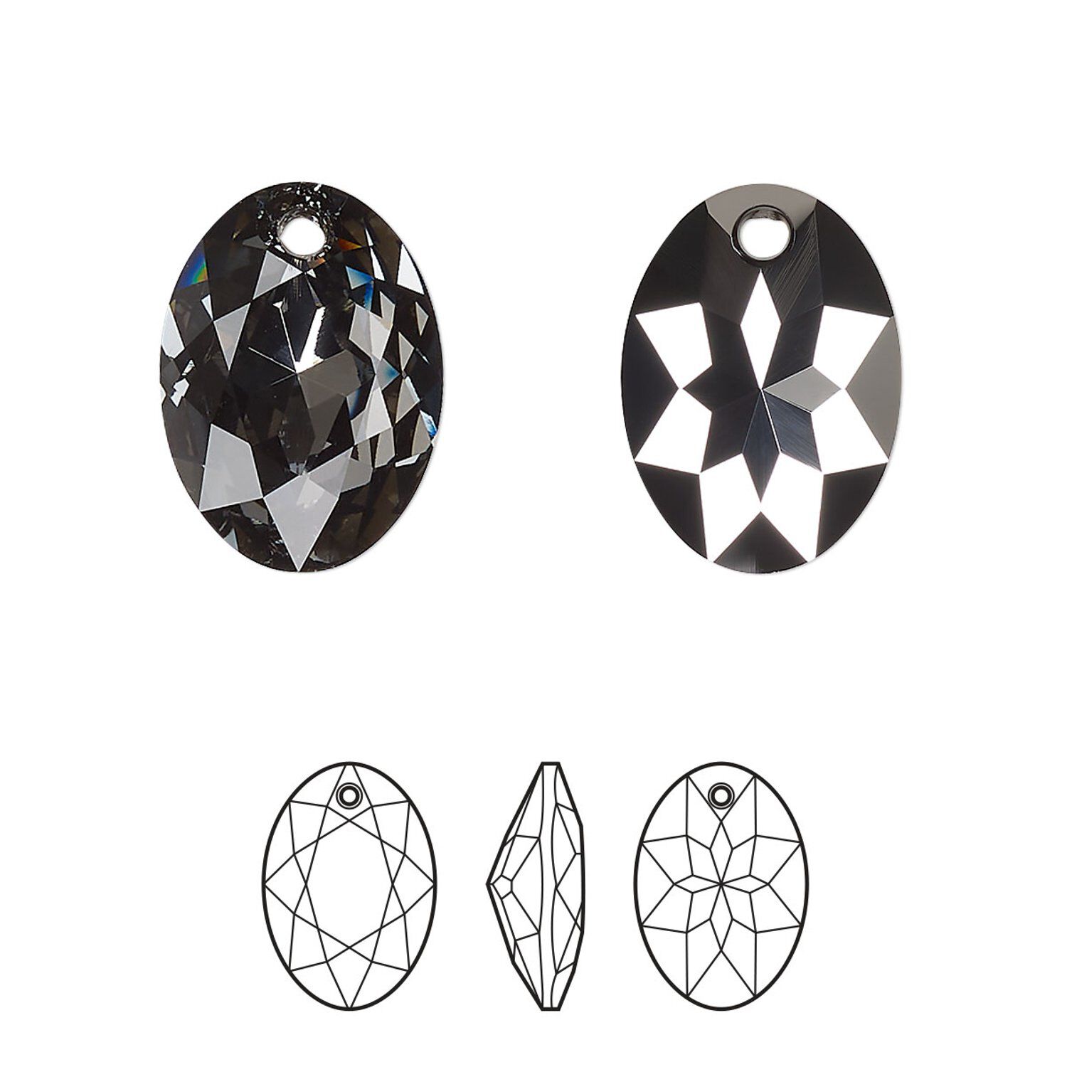 Drop 36pk crystal silver night, Swarovski® 16mm pendant elliptic cut 6438