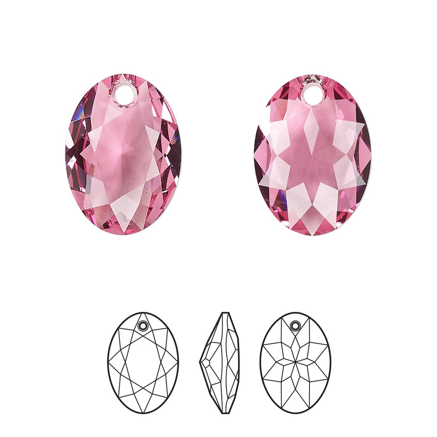 Drop 36pk rose, Swarovski® 16mm pendant elliptic cut 6438