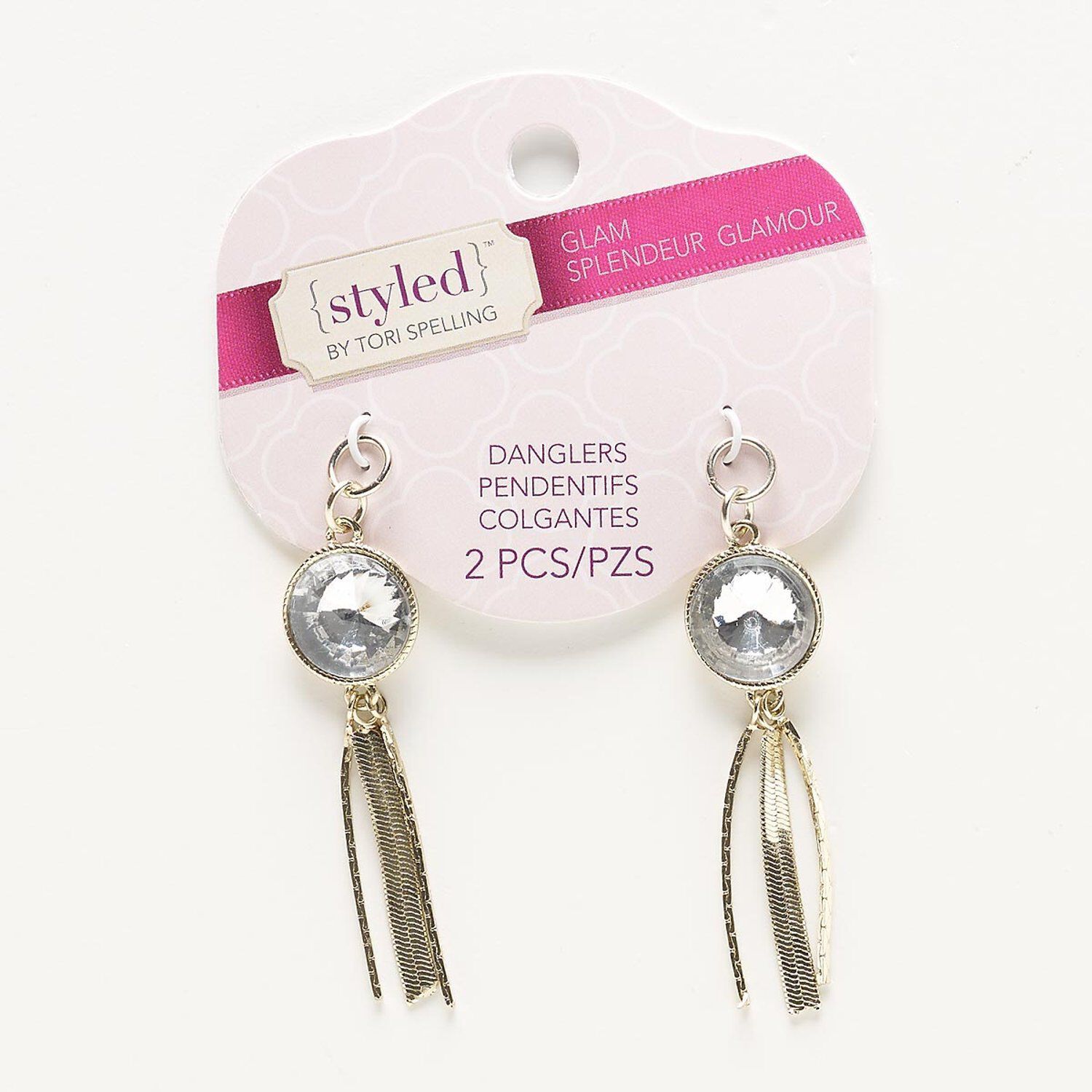 Focal, glass rhinestone / acrylic / gold-finished steel / "pewter" (zinc-based alloy), clear, 51x16mm. Sold per pkg of 2.