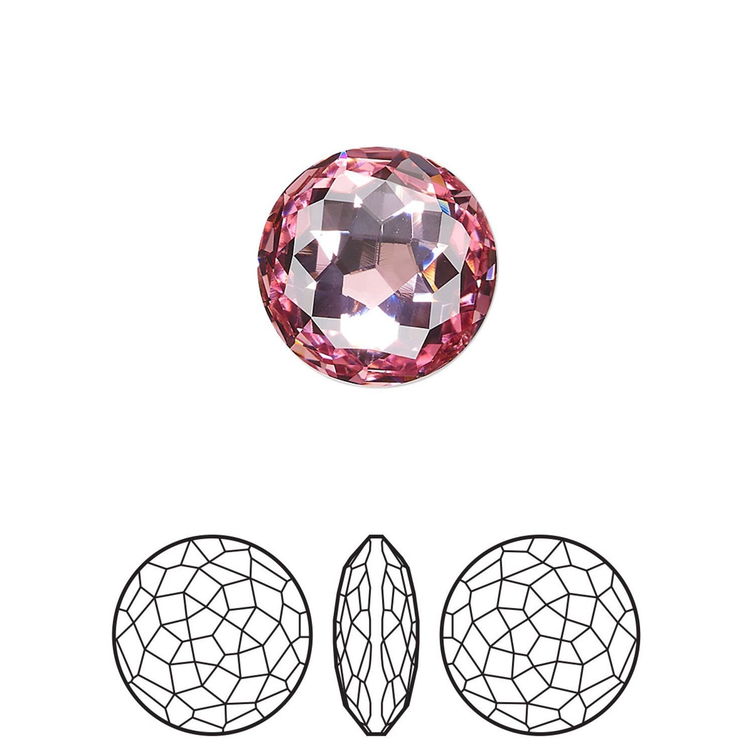 Round stone 48pk light rose foil back, Swarovski® 14mm fancy round 1383