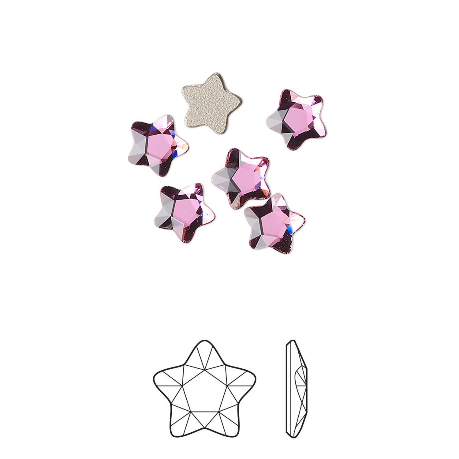 Flat back 6pk dark rose foil back, Crystal Passions® 6mm star flower 2754