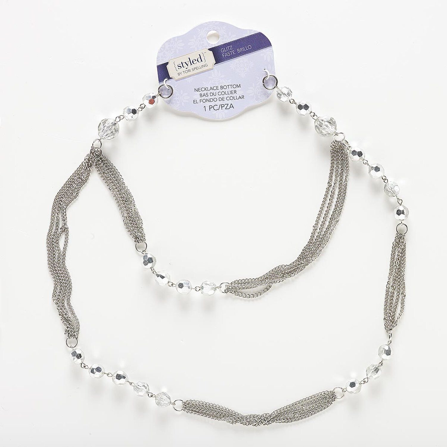 Necklace component, 2-strand, acrylic and silver-finished steel, clear with half-silver finish, faceted round, 16-1/2 inches. Sold individually.