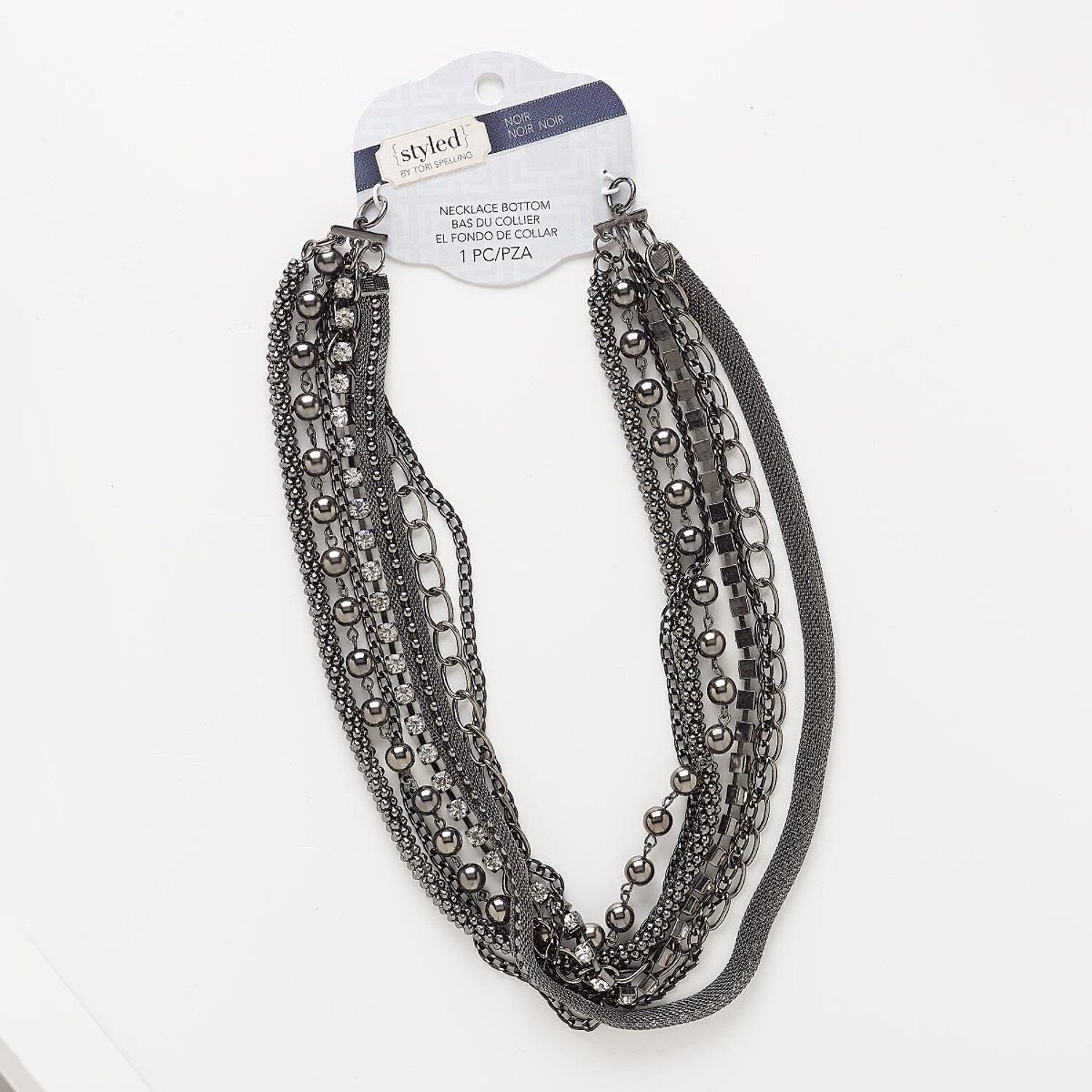 Necklace component, 7-strand, glass rhinestone / gunmetal-coated plastic / gunmetal-finished steel / "pewter" (zinc-based alloy), clear, 18 inches. Sold individually.