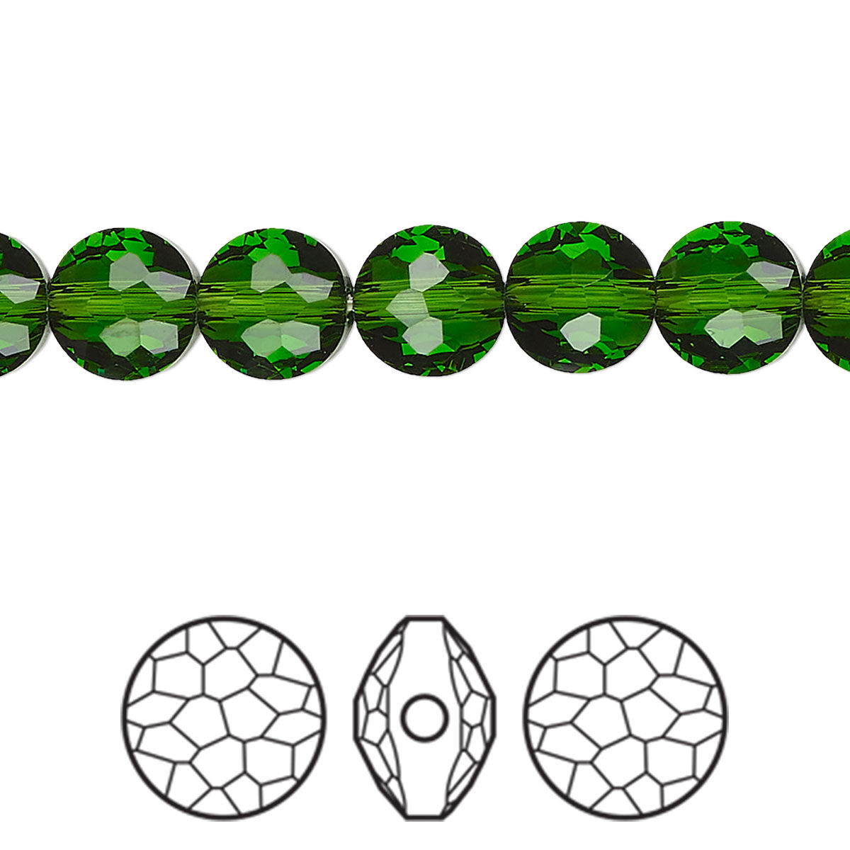 The faceted puffed round bead is a transitional shape between the Swarovski® round bead and the round fancy stone. The gentle dome of the puffed round gives the precision faceting even more opportunities to sparkle.