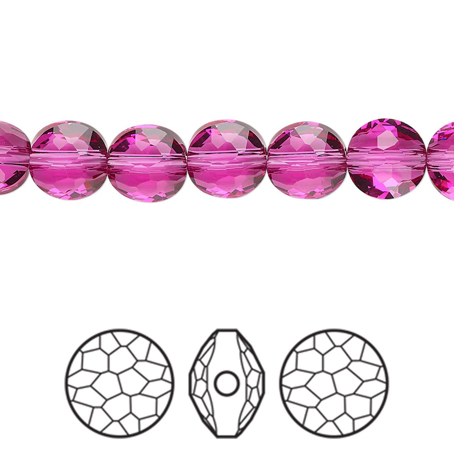 These Swarovski® beads are dressed in the perpetually popular color of fuchsia. A member of the purple family, fuchsia connects beautifully with nearby shades of red, lavender, violet and pink. Designers can draw on the flexibility of fuchsia in jewelry and accessories that will transition from season to season, making it ideal for warm-weather wear or cool jewels.