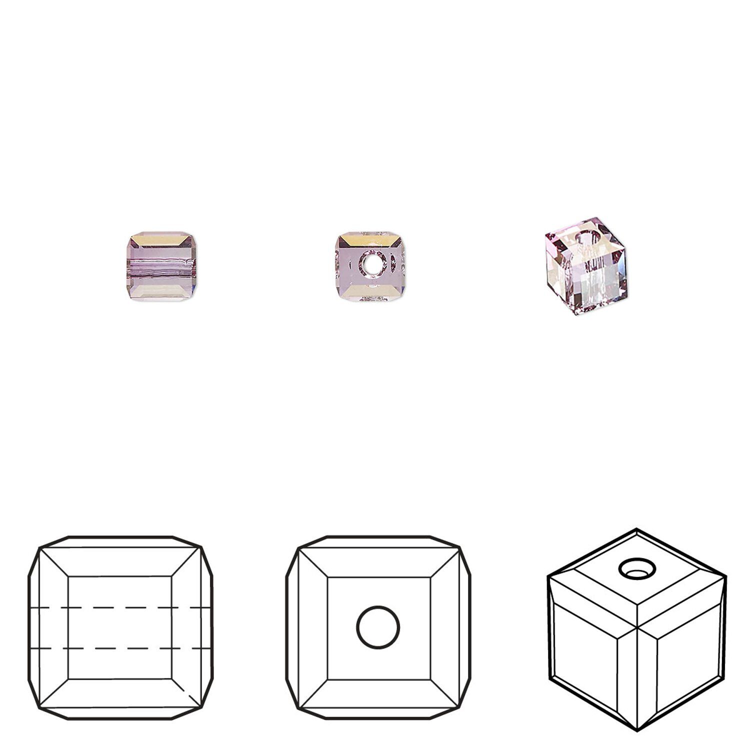 Bead 288pk dark rose, Swarovski® 4mm cube 5601