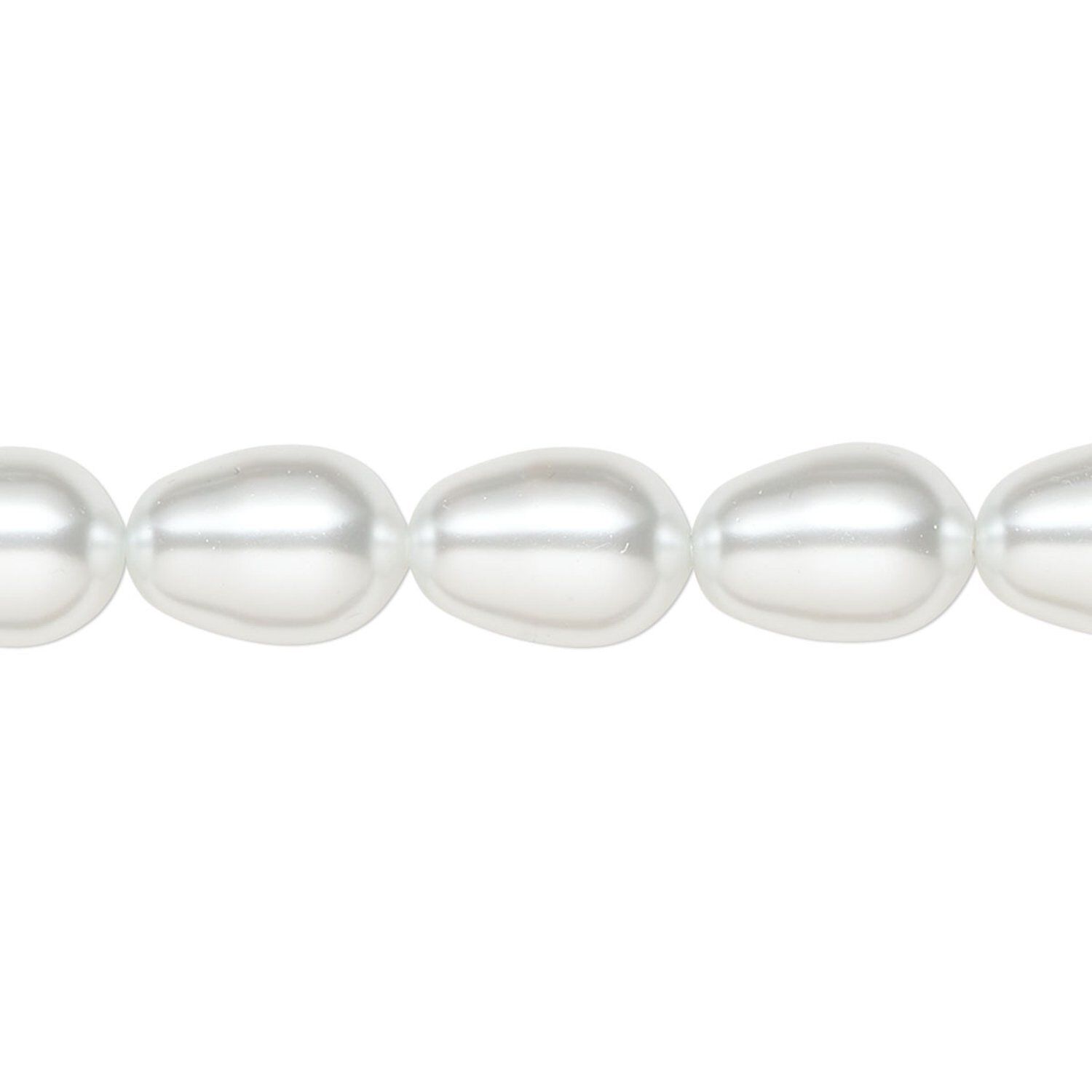 Pear-shaped crystal pearl beads display a timeless teardrop shape with a top-to-bottom stringing hole, ideal for classic pearl drop earrings formed on a head pin.