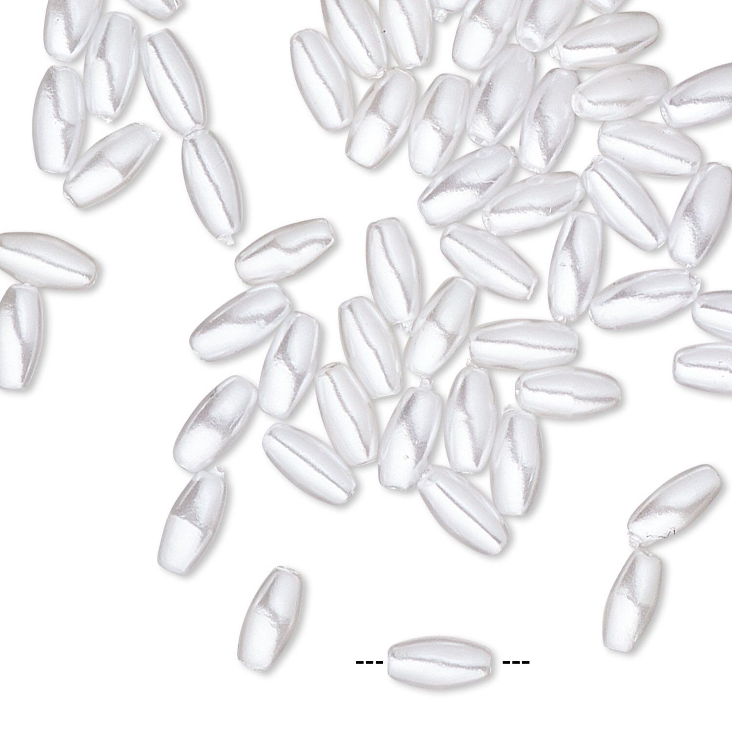 Bead, acrylic pearl, white, 6x3mm-7x3mm oval. Sold per pkg of 55.