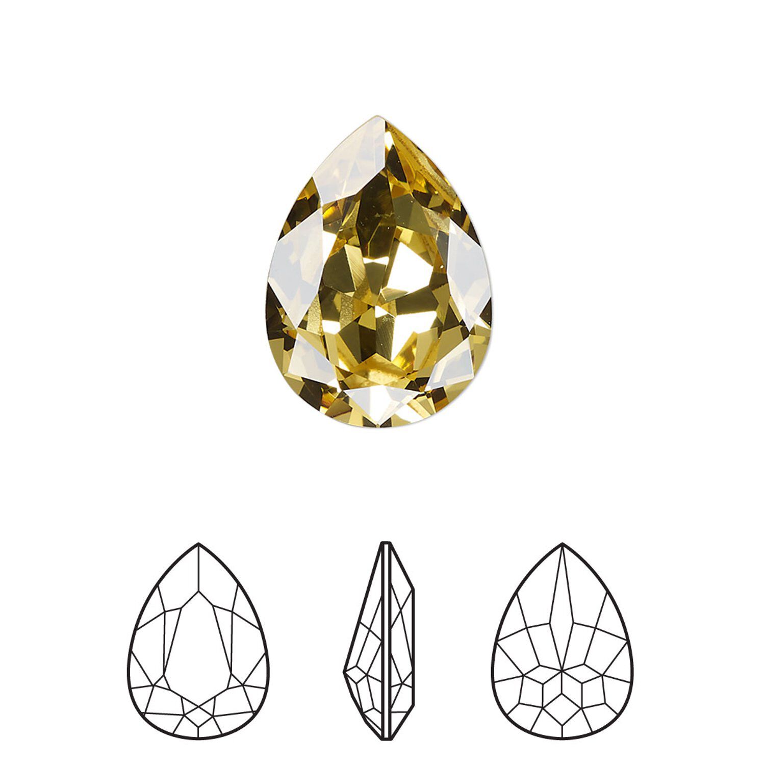 Fancy stone 1pk dark jonquil foil back, Crystal Passions® Regenerated 18x13mm pear 4320