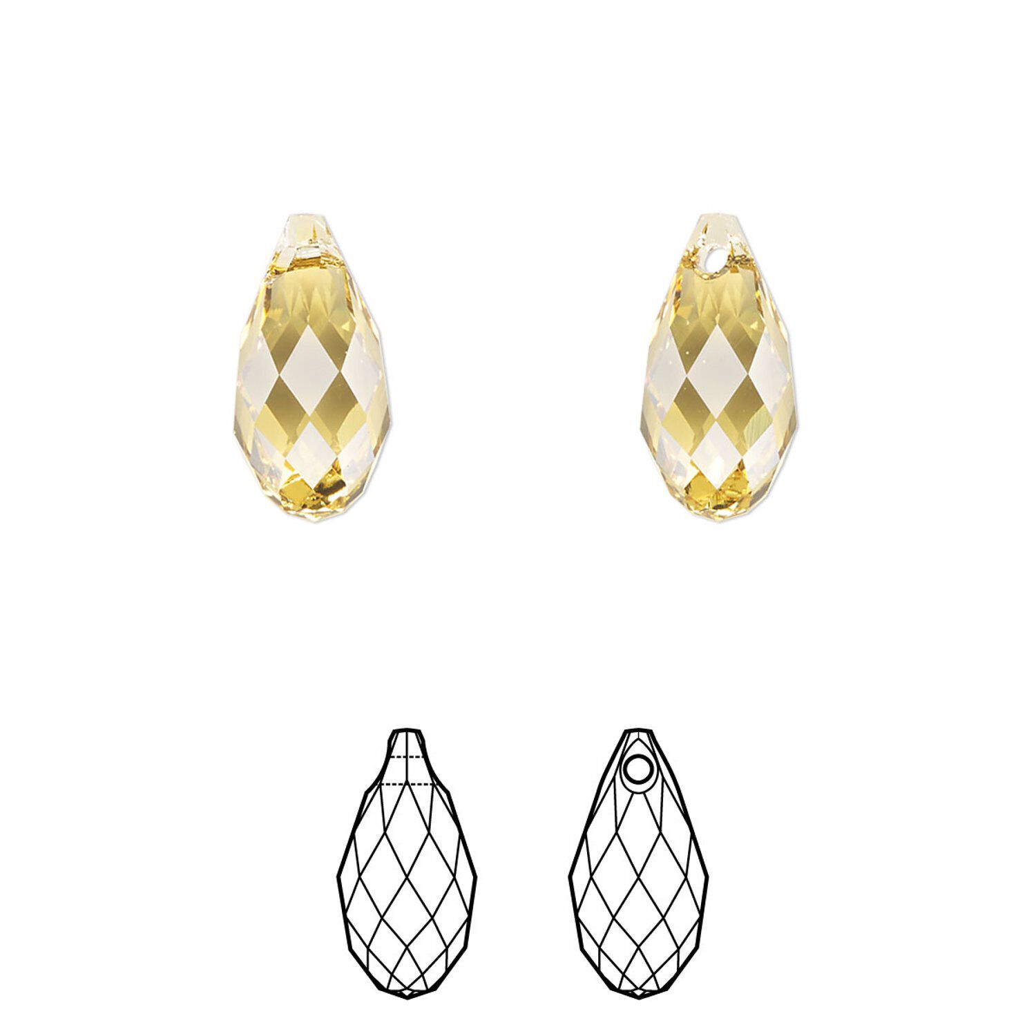 Radiate elegance in jewelry and accessories with Swarovski briolette drops. The elongated, pear-shaped crystals are top-drilled and dangle from chain with sophistication.