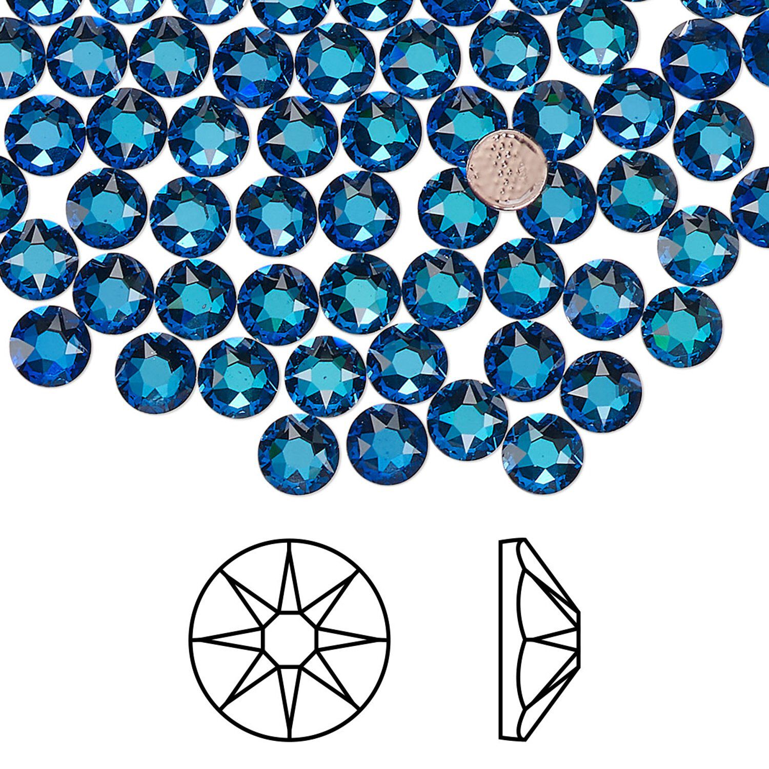 Flat back 144pk crystal Bermuda blue foil back, Crystal Passions® hotfix 4.6-4.8mm round SS20 2078