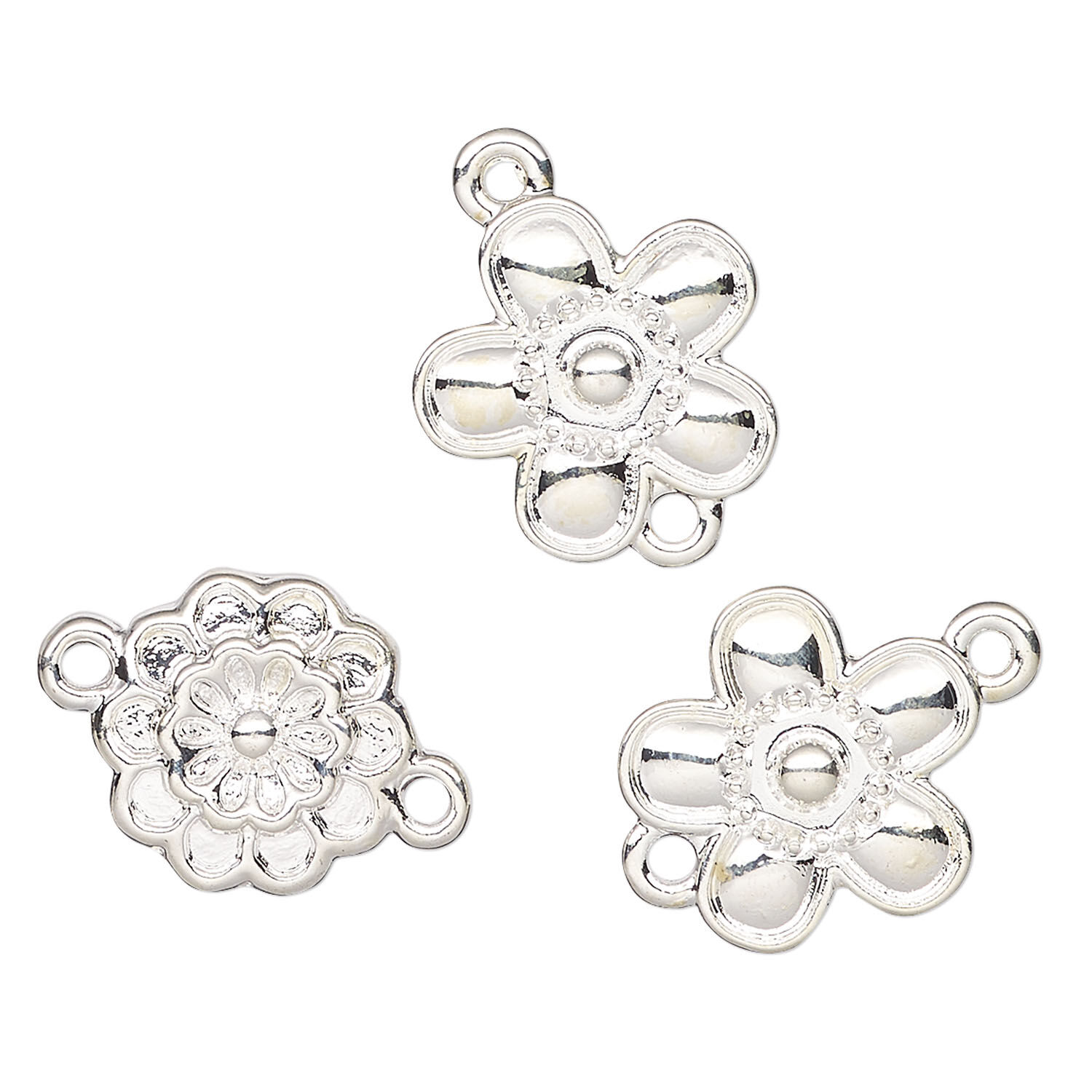 Link, silver-finished "pewter" (zinc-based alloy), 15x13mm and 17x14mm flower enamel blank. Sold per pkg of 3.