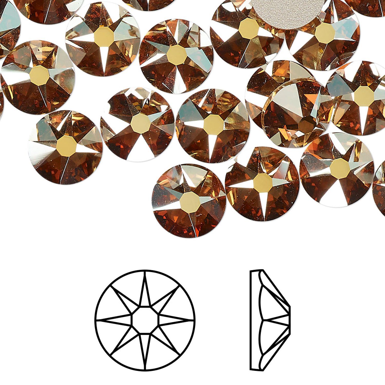 Flat back 12pk crystal metallic sunshine foil back, Crystal Passions® 8.412-8.672mm rose round SS40 2088