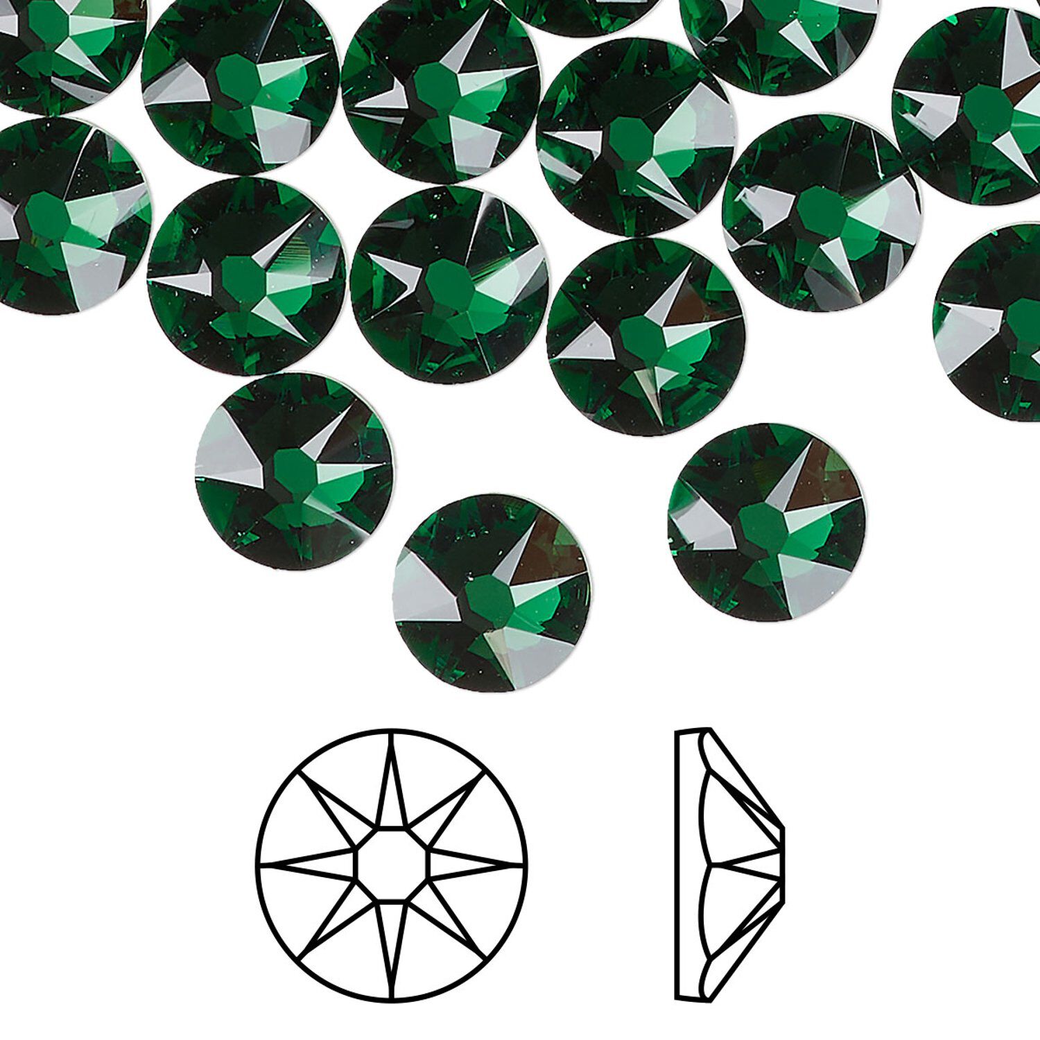 Flat back 12pk majestic green foil back, Crystal Passions® 8.412-8.672mm rose round SS40 2088