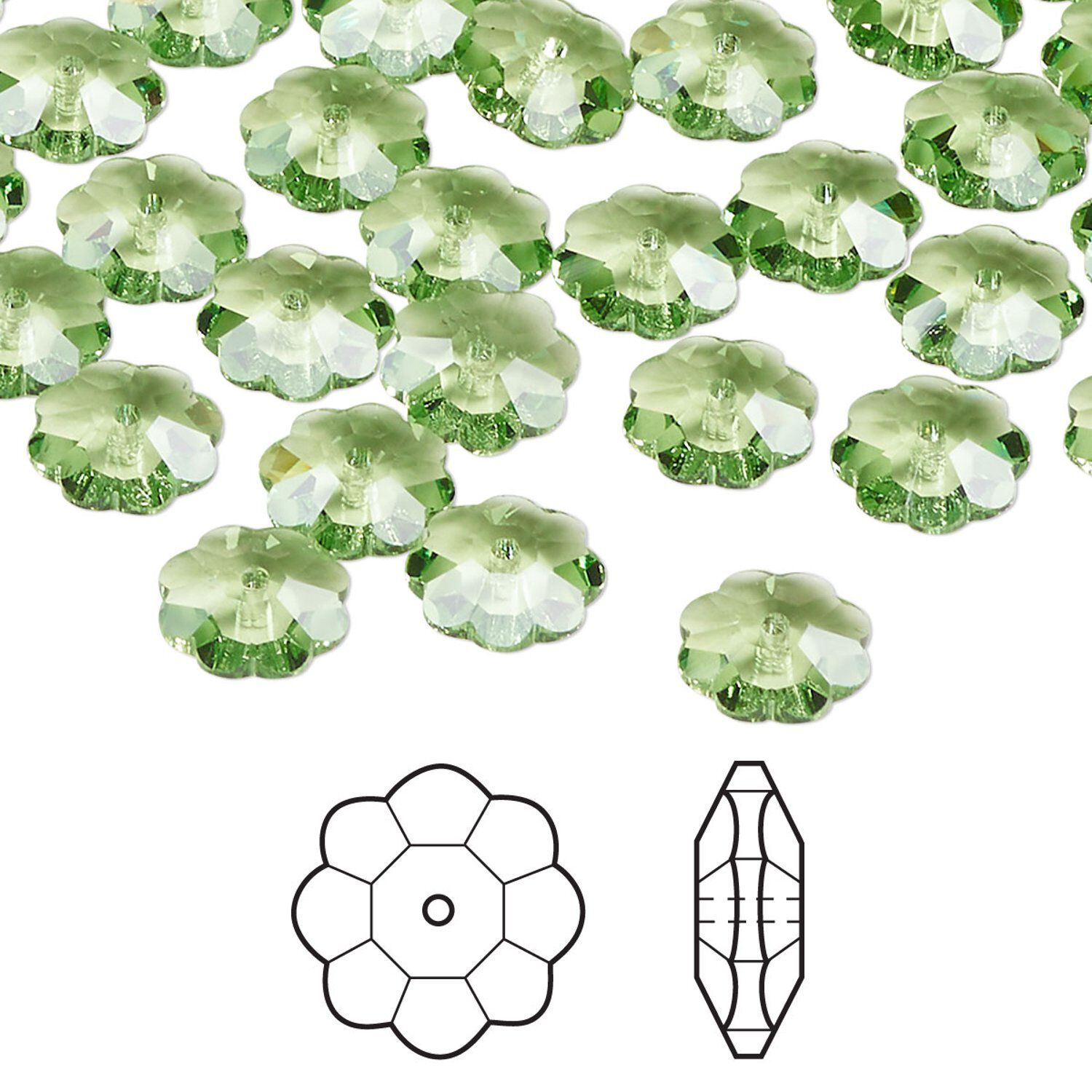 These sparkling flowers, known as "margaritas," are center-drilled for use as buttons or sew-on embellishments for purses, bags, hats, scarves, jeans and shirts. Or use as jewelry components and group together for a tiny bouquet.