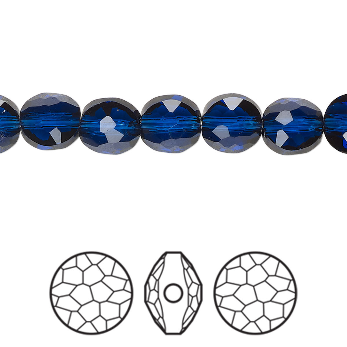 Bead 144pk dark sapphire, Swarovski® ReCreated™ 8mm puffed round 5034