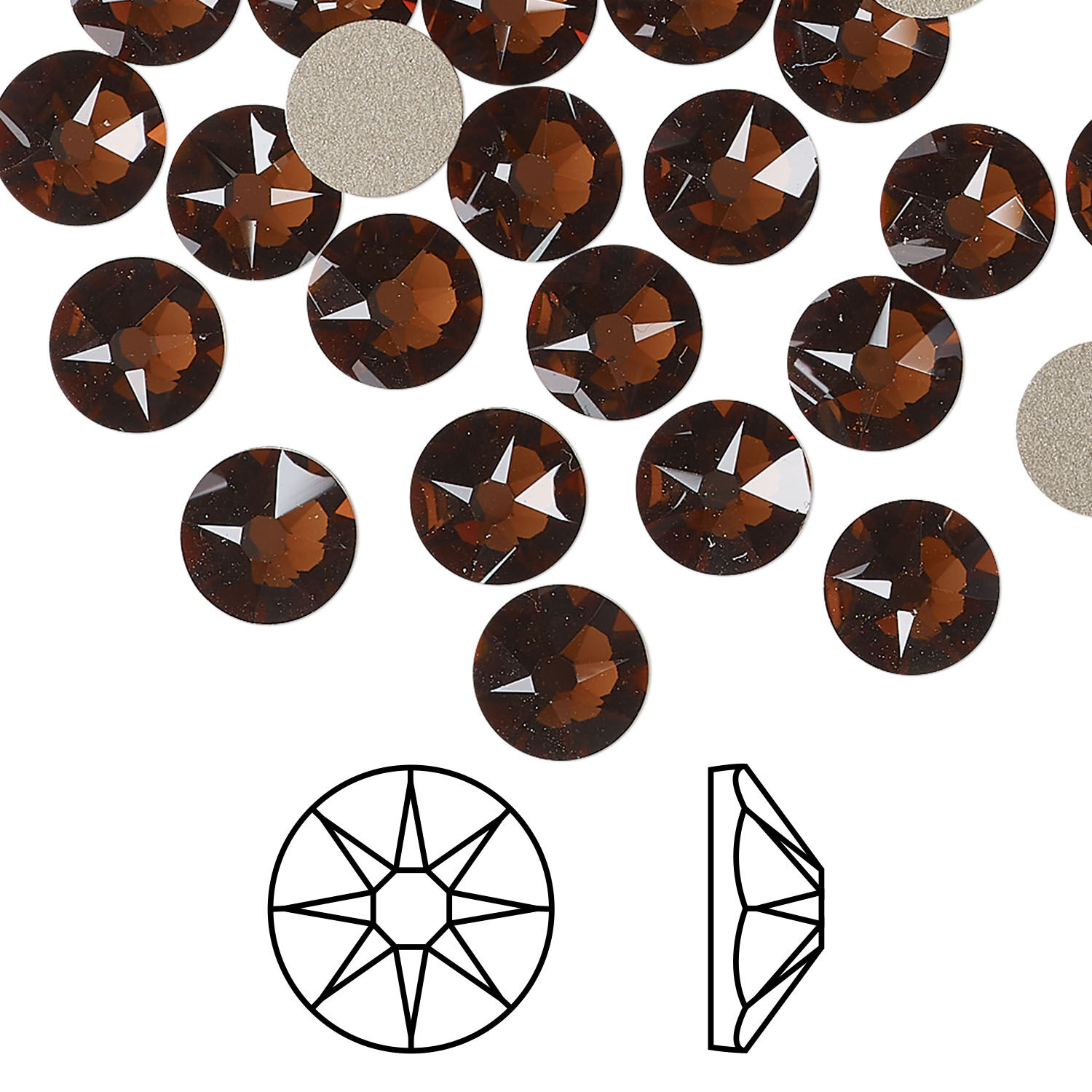 Flat back 1pkg12 smoked topaz foil back, Crystal Passions® Regenerated 7.07-7.27mm rose round SS34 2088