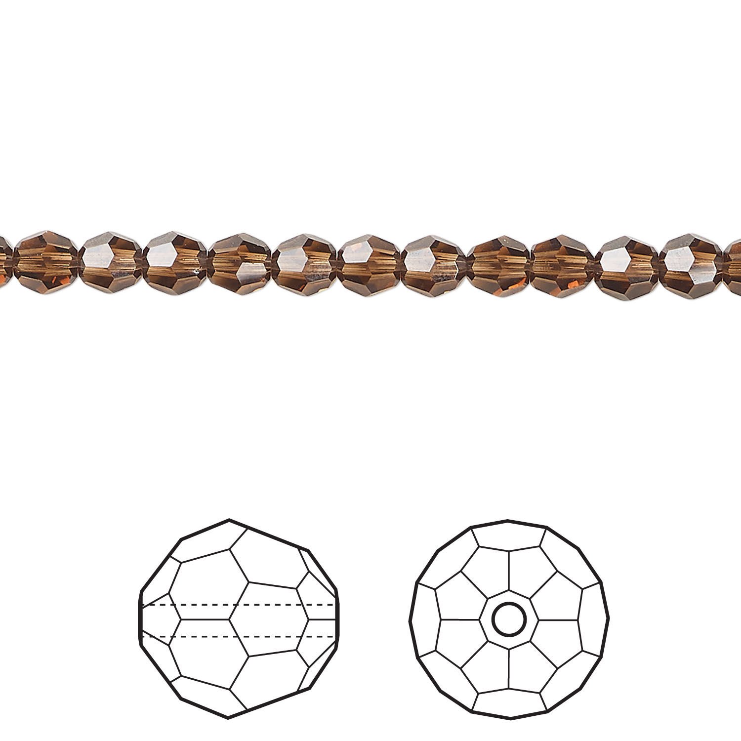 Bead 1pkg144 smoked topaz, Crystal Passions® Regenerated 4mm round 5000