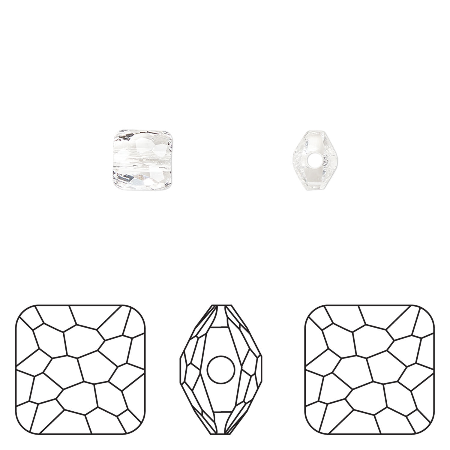 Bead 1pkg288 crystal clear, Swarovski®, 6mm puffed square 5035