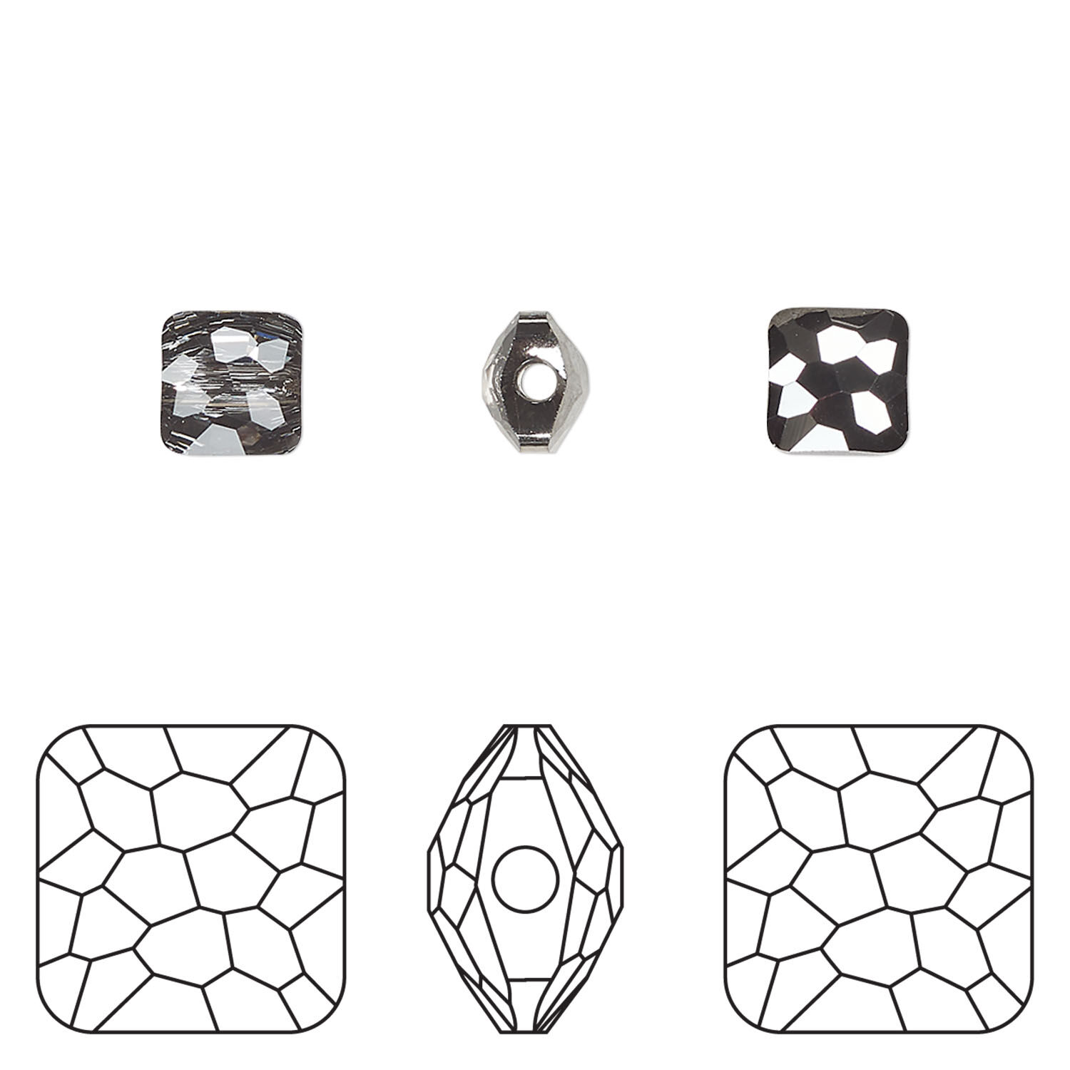 Bead 1pkg4 crystal silver night, Crystal Passions® 6mm puffed square 5035