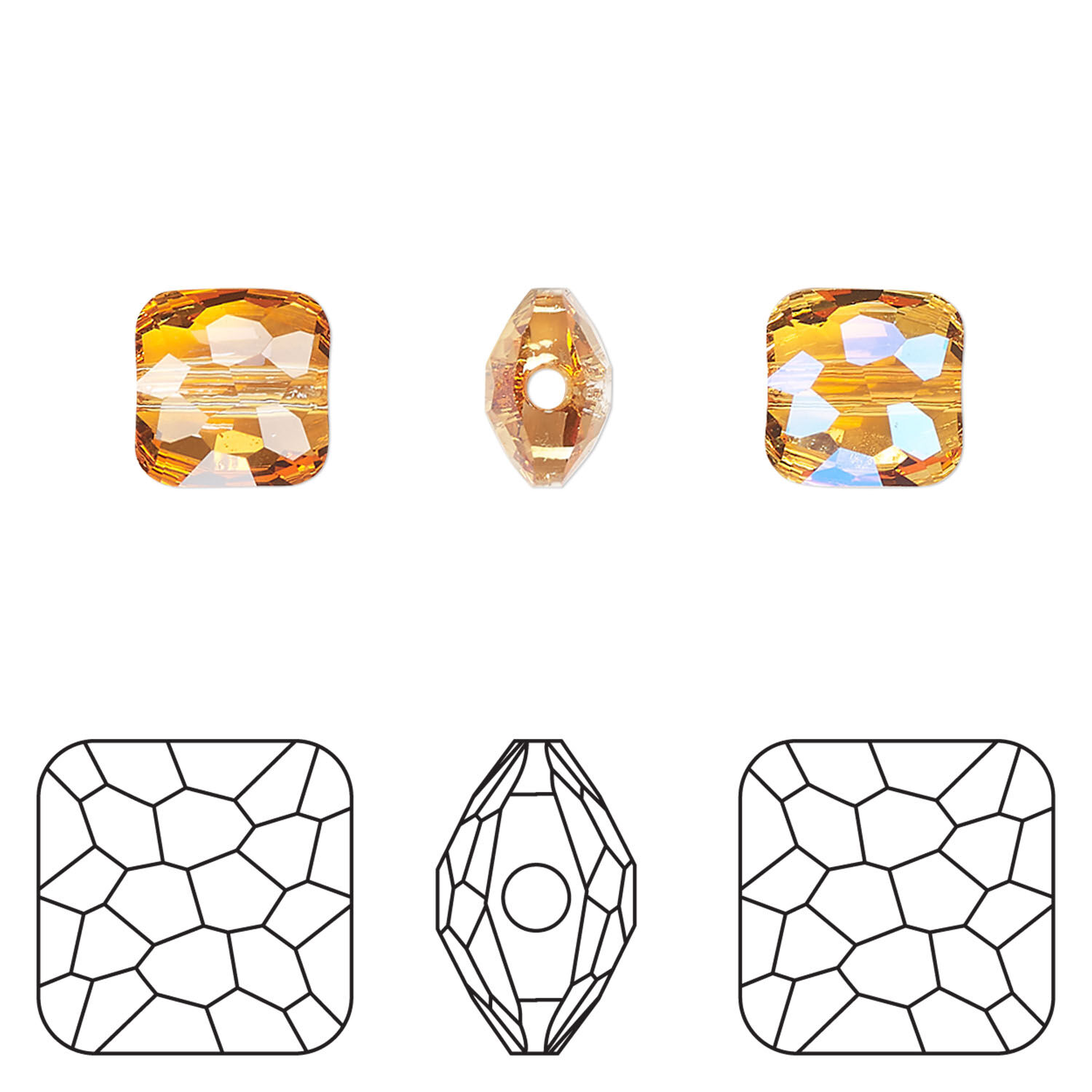 Both timeless and avant-garde, this square shape features an asymmetrical cut that plays with light and shadow to deliver brilliance from every angle. This striking, modern take on the classic square bead lies flat against the skin, allowing for versatile use in jewelry and accessories.