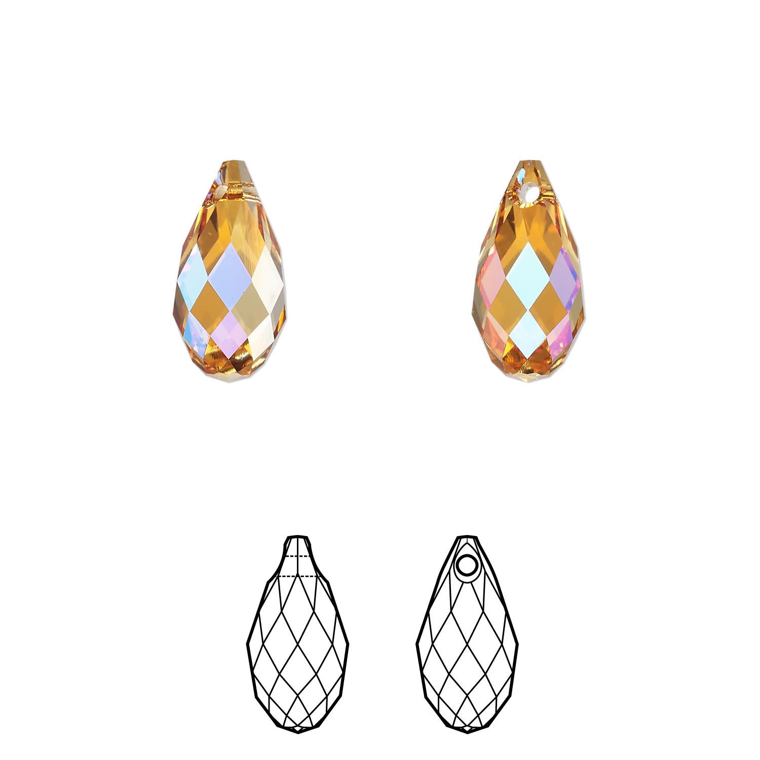 Radiate elegance in jewelry and accessories with briolette drops. The elongated, pear-shaped crystals are top-drilled and dangle from chain with sophistication.