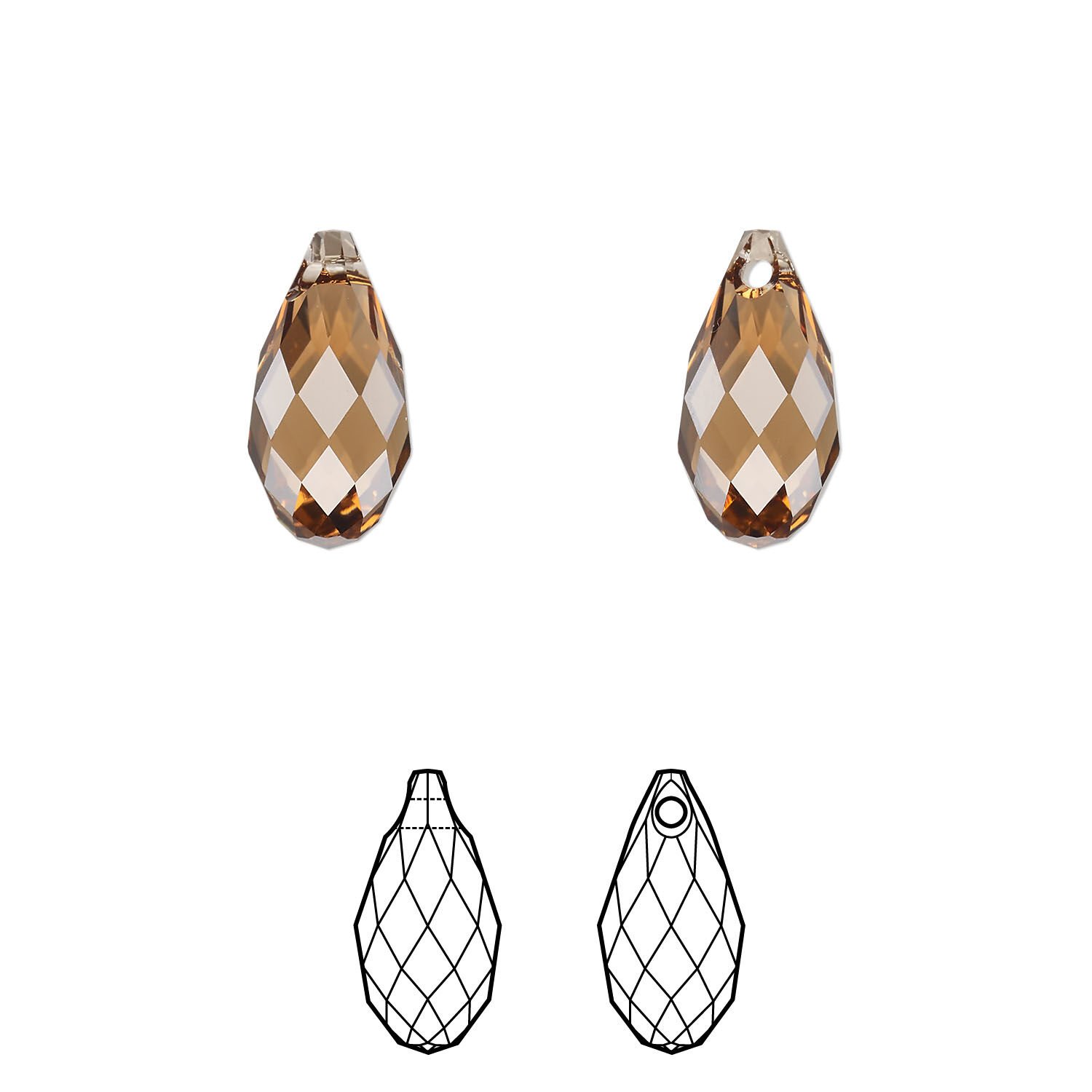 Briolette 1pkg2 light smoked topaz, Crystal Passions® Regenerated 13x6.5mm pendant drop 6010