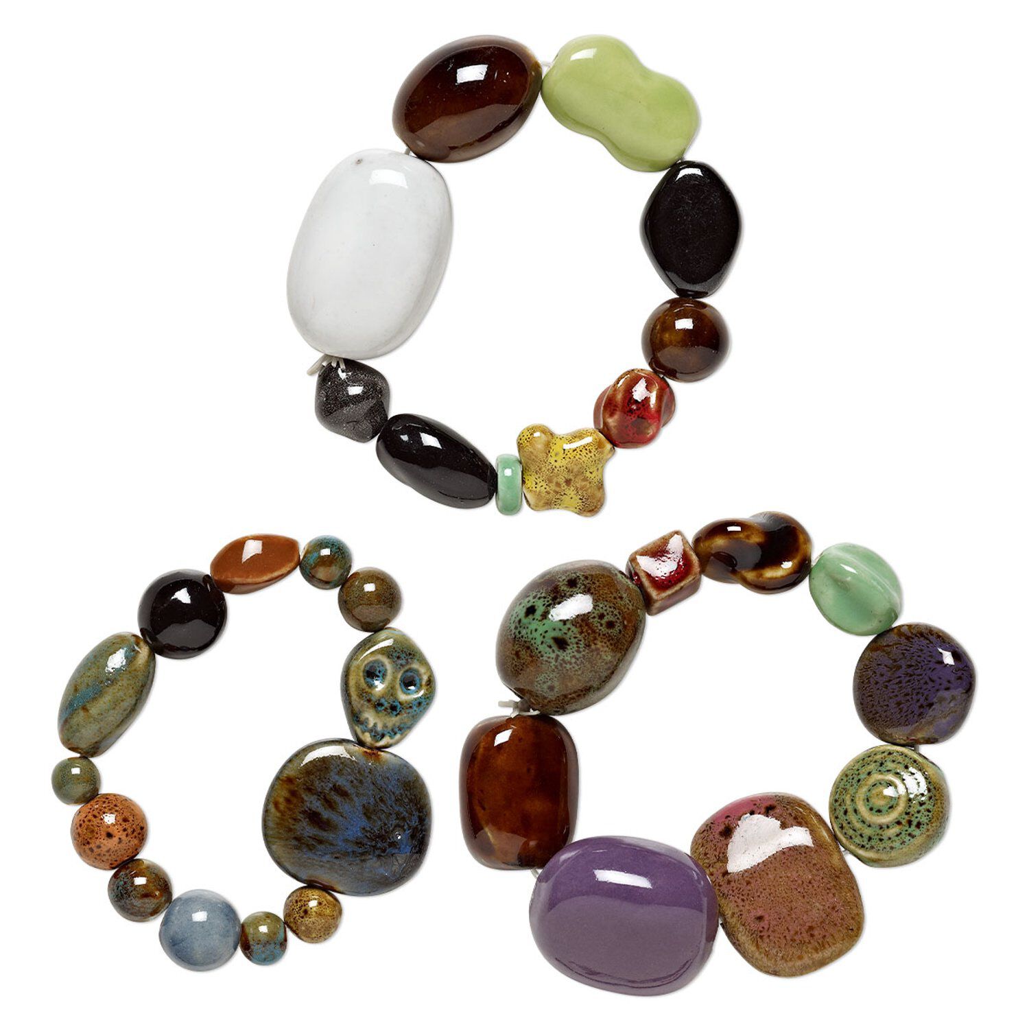 Bracelet, stretch, porcelain, multicolored, 8x4mm-37x33mm multi-shape, 7 inches. Sold individually.