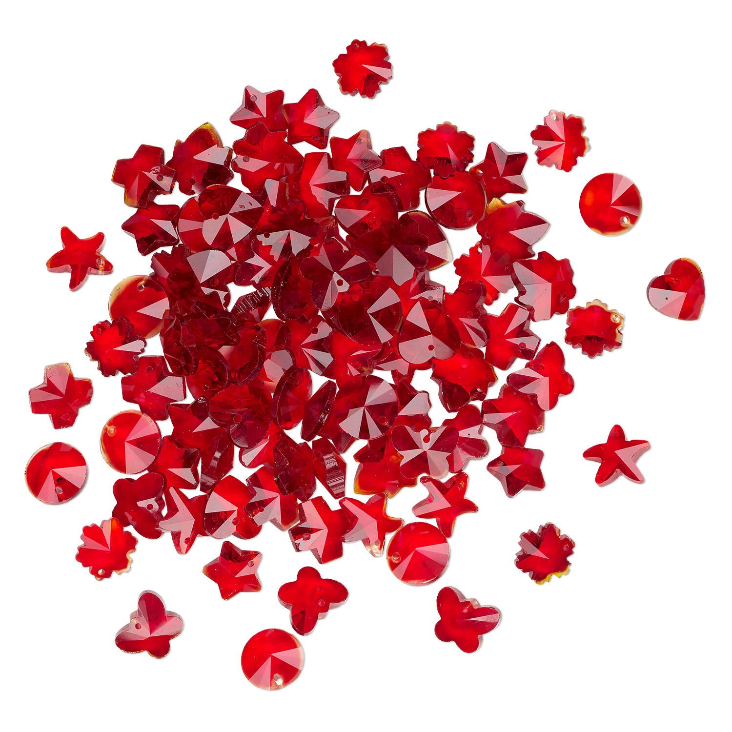 Drop mix, glass, fire red, 13x13mm-16x16mm mixed shape. Sold per 0.25-pound pkg, approximately 95 drops.