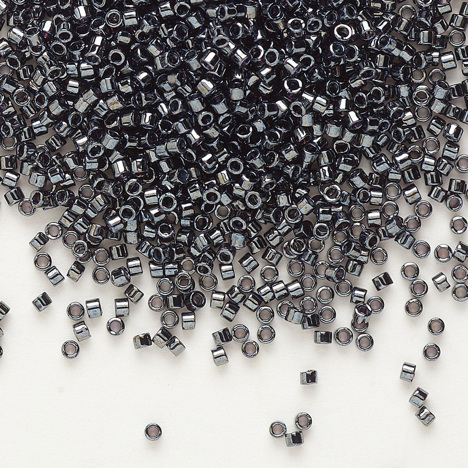 Seed bead, Delica®, glass, pkg/50g, #11 round, opaque metallic gunmetal (DB-0001).
