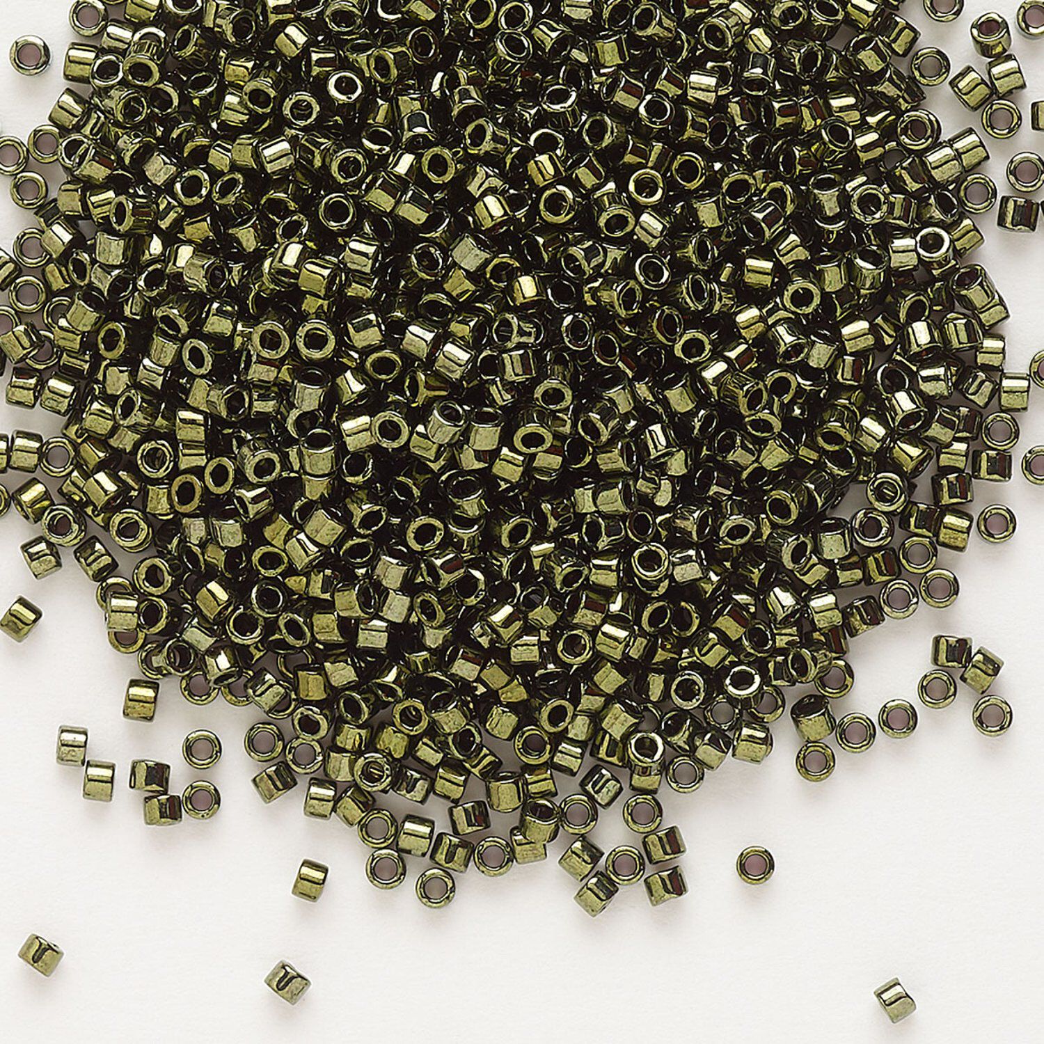 Seed bead, Delica®, glass, pkg/50g, #11 round, opaque metallic olive (DB-0011).