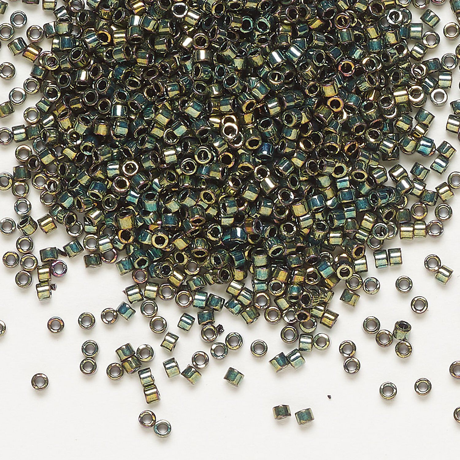 Seed bead, Delica®, glass, pkg/250g, #11 round, opaque metallic iris green (DB-0024).