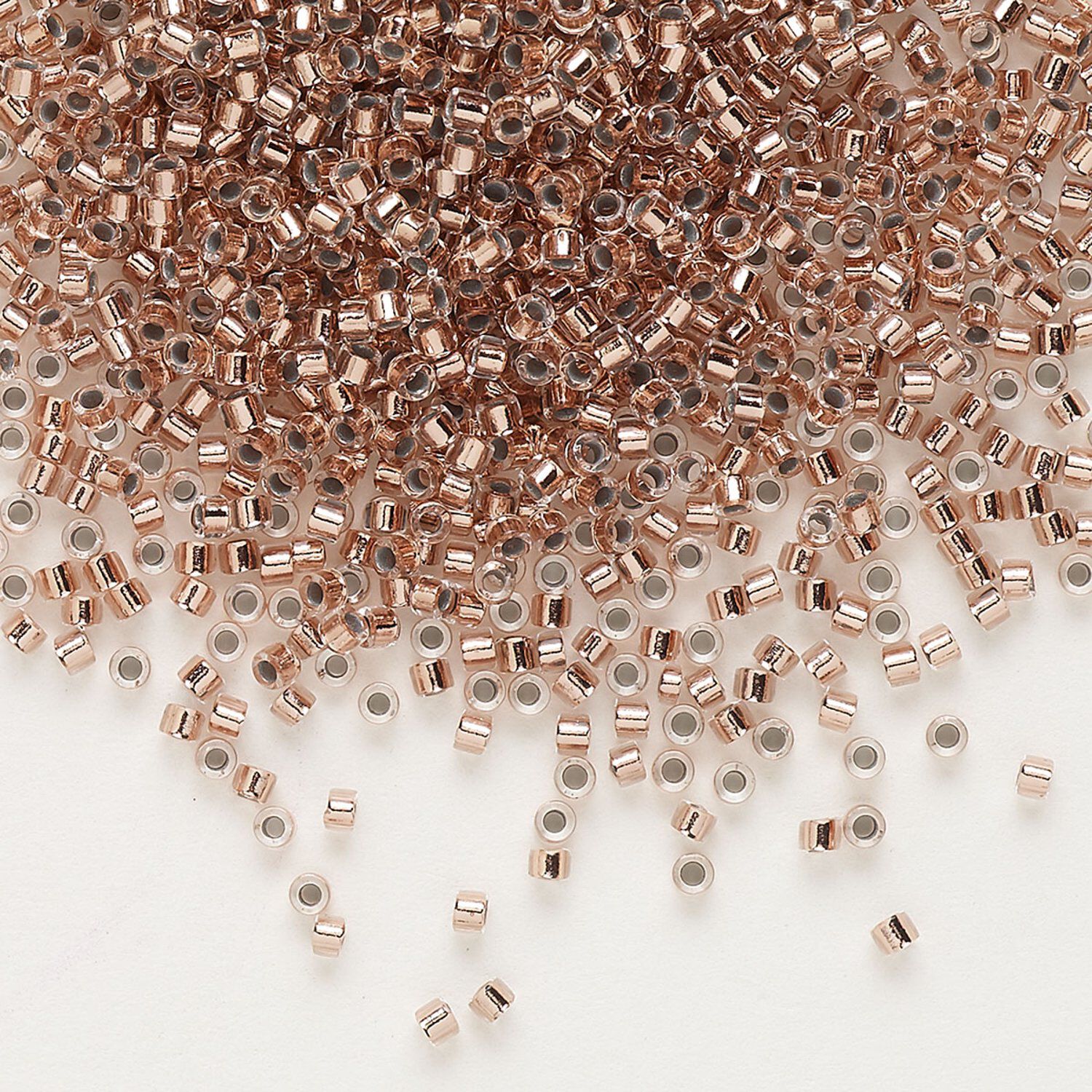 Seed bead, Delica®, glass, pkg/250g, #11 round, transparent copper-lined crystal clear (DB-0037).