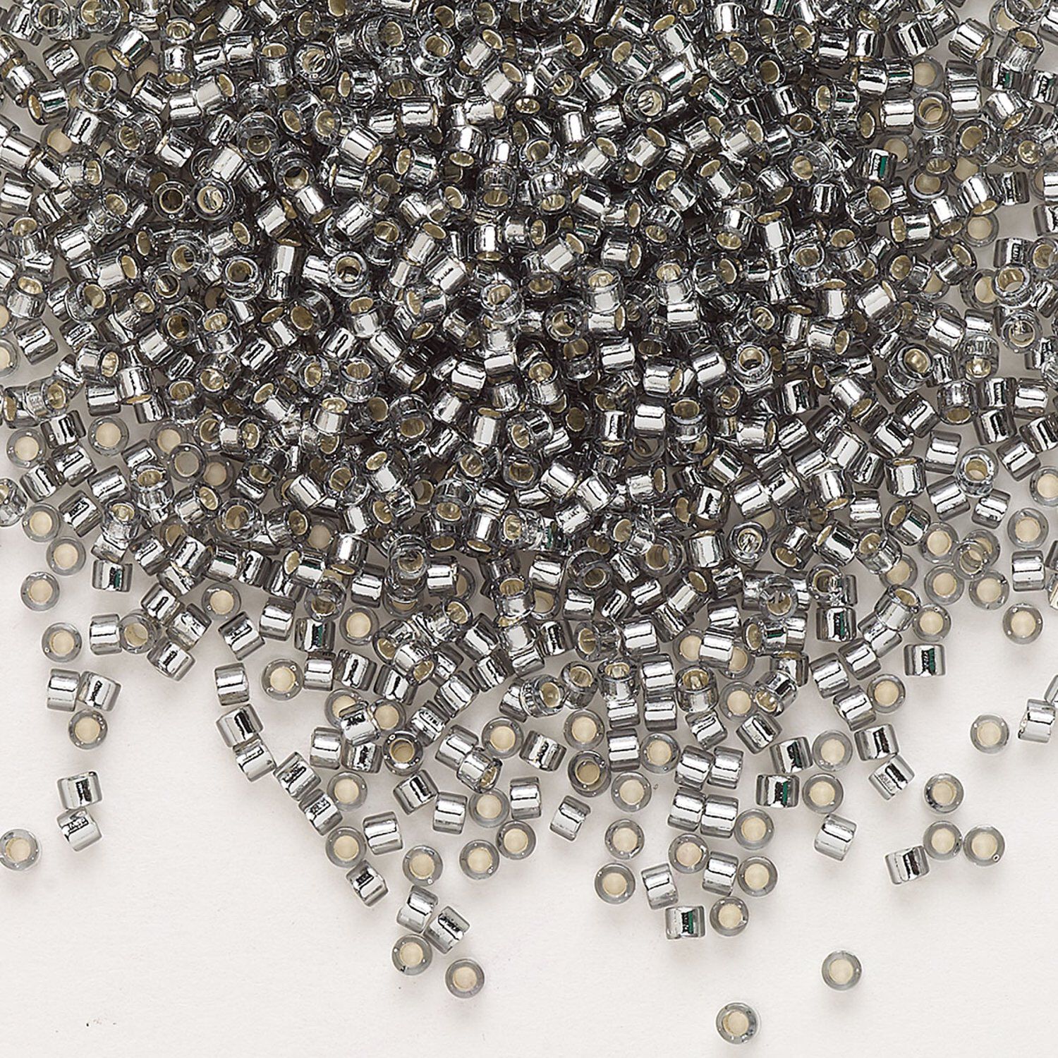 Seed bead, Delica®, glass, pkg/250g, #11 round, transparent silver-lined light grey (DB-0048).