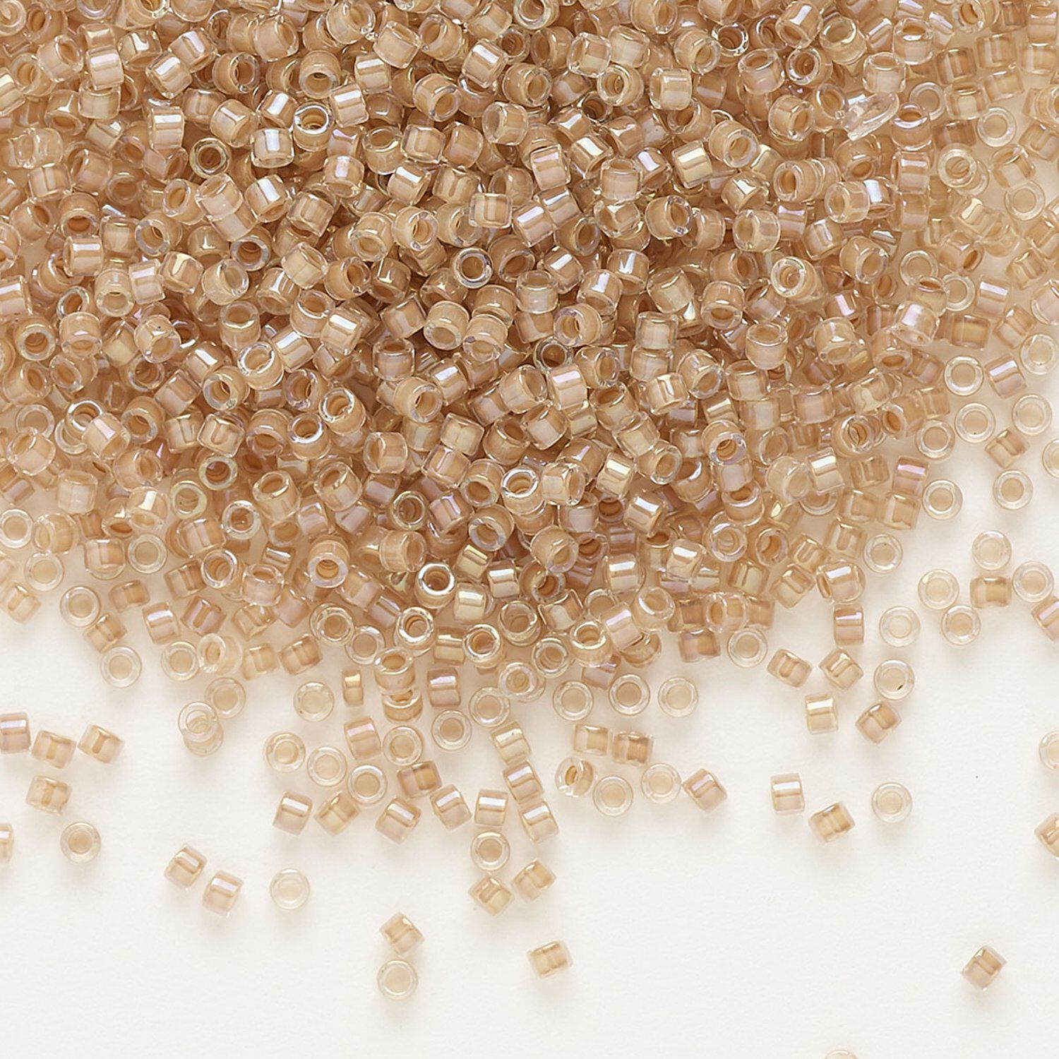 Seed bead, Delica®, glass, pkg/250g, #11 round, translucent blush-lined luster crystal clear (DB-0069).